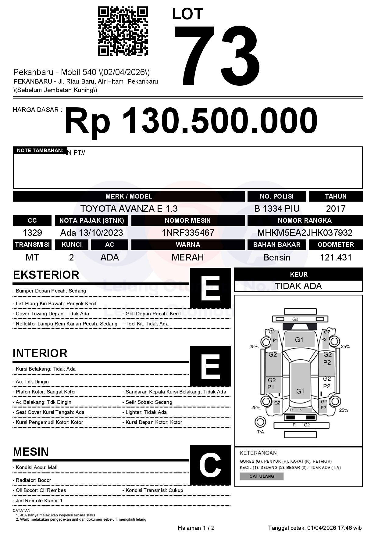 Tanggal Lelang: 02/04/2026 | 13:00 WIB