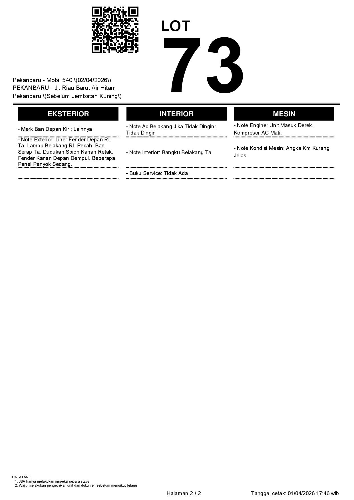 1. Peserta lelang wajib cek unit & dokumen