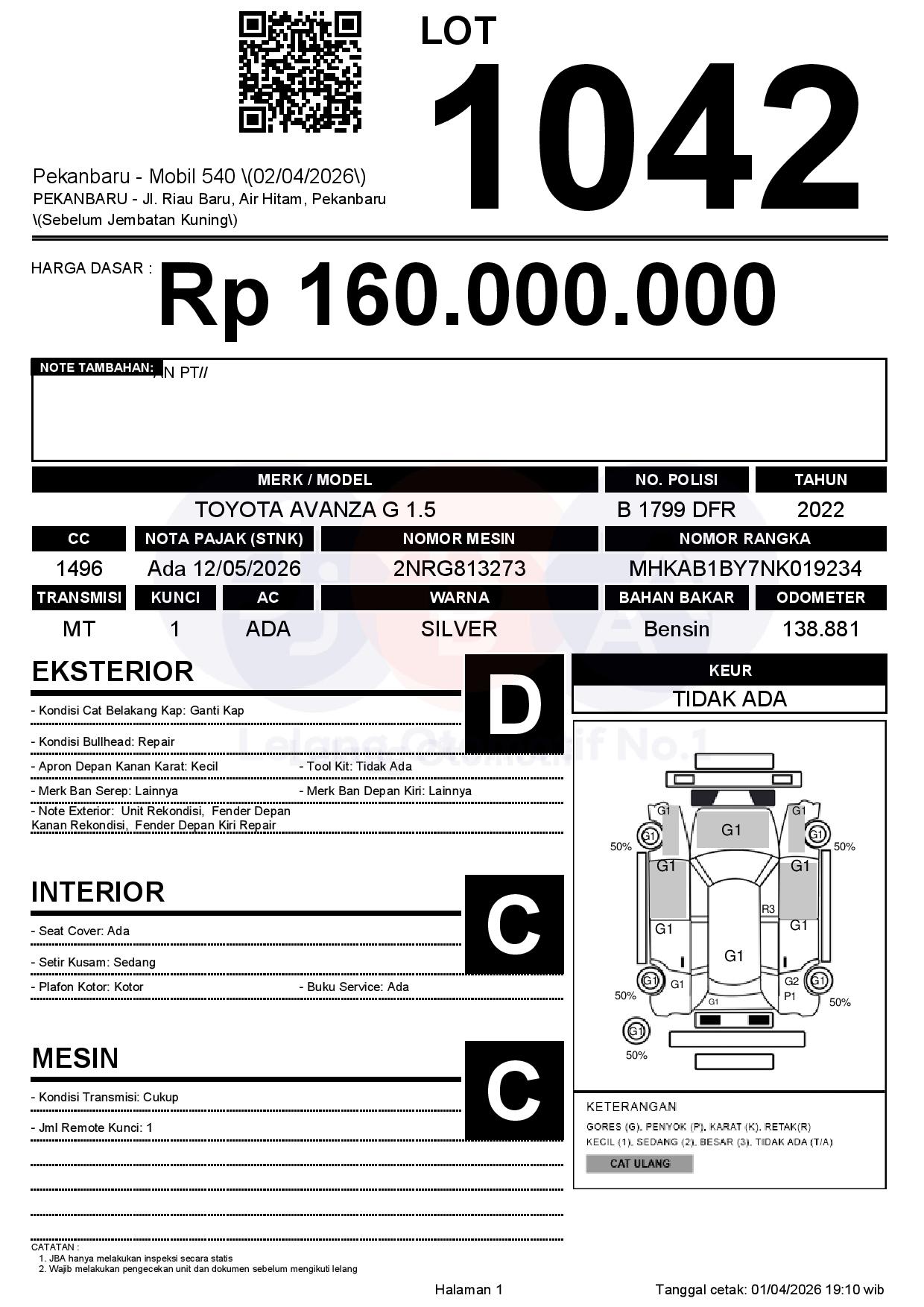 Tanggal Lelang: 02/04/2026 | 13:00 WIB