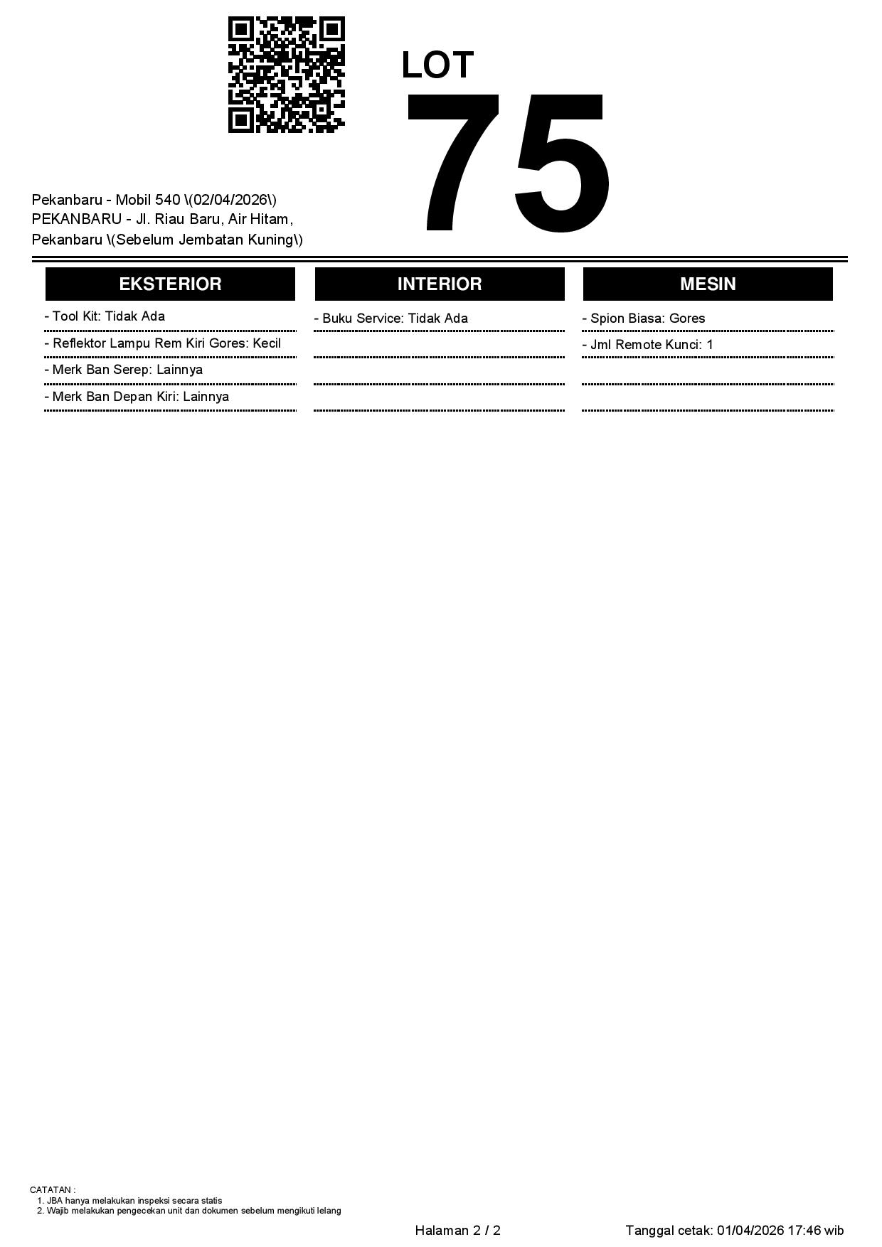 Tanggal Lelang: 02/04/2026 | 13:00 WIB