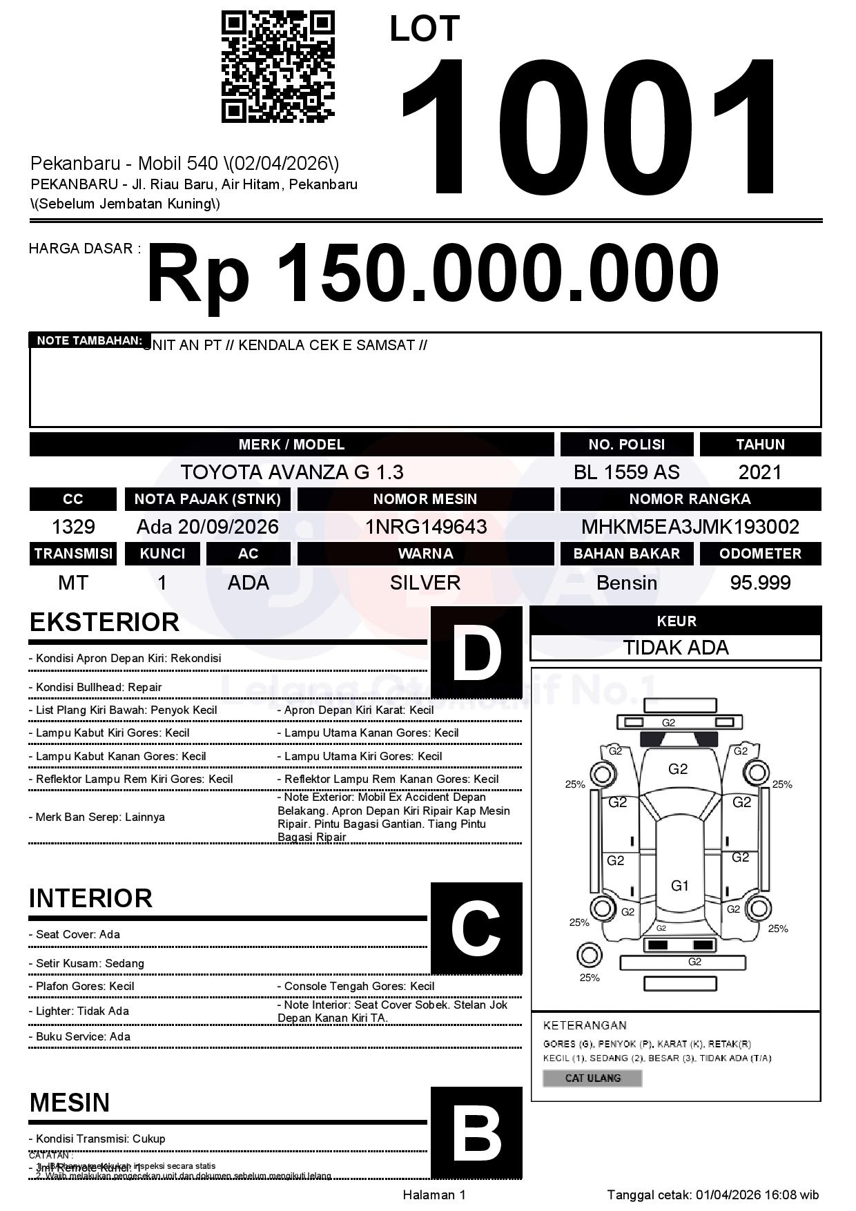 Tanggal Lelang: 02/04/2026 | 13:00 WIB
