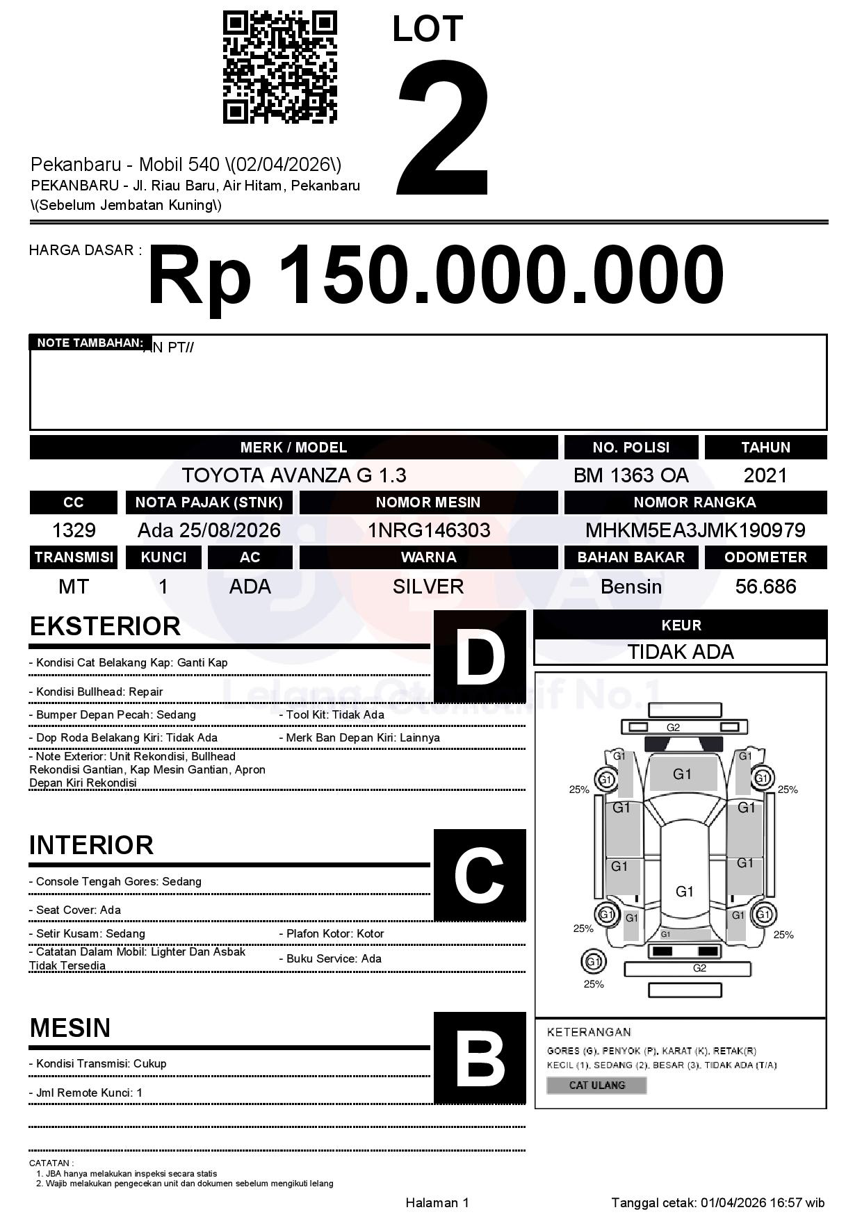 Tanggal Lelang: 02/04/2026 | 13:00 WIB