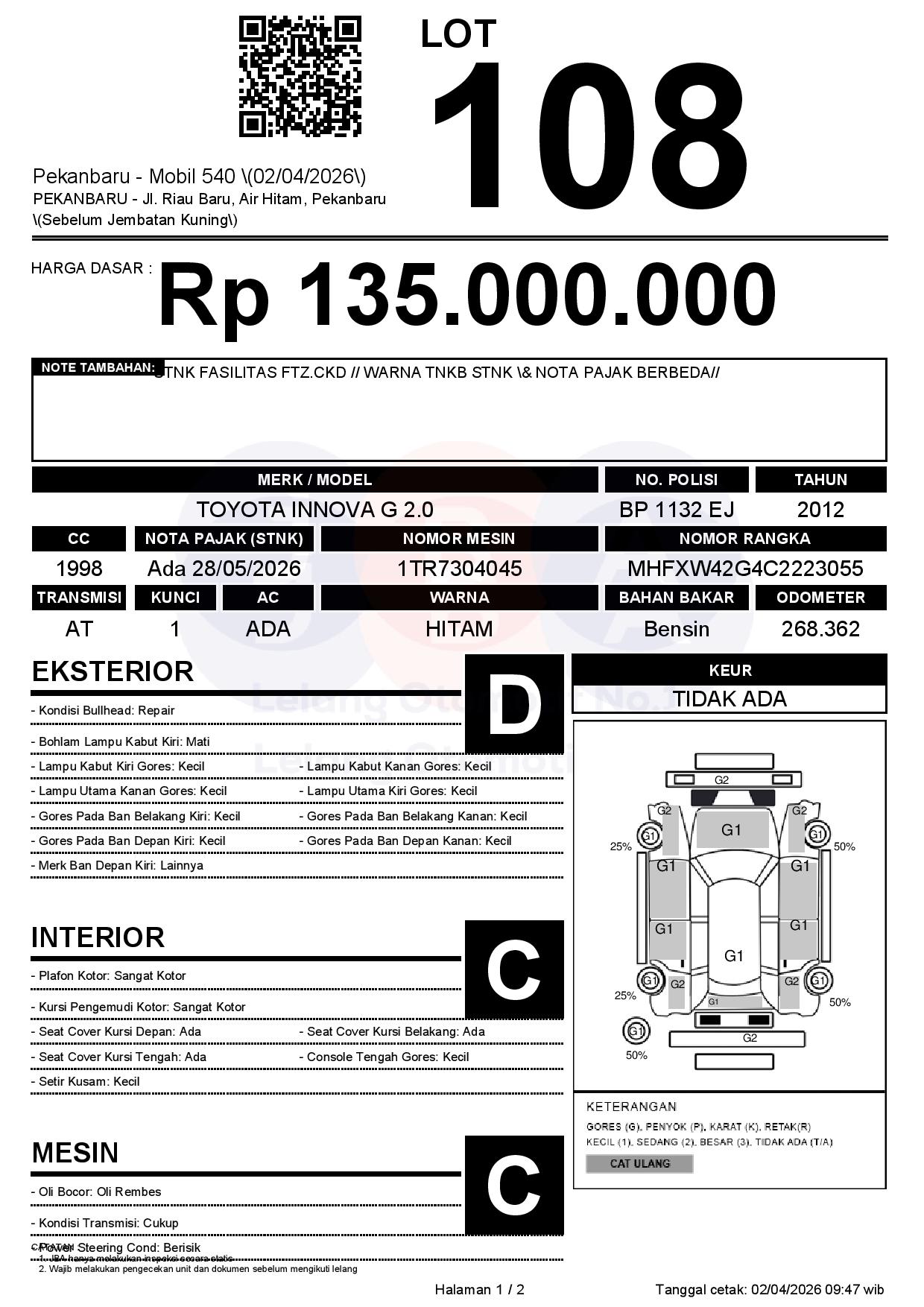 Tanggal Lelang: 02/04/2026 | 13:00 WIB