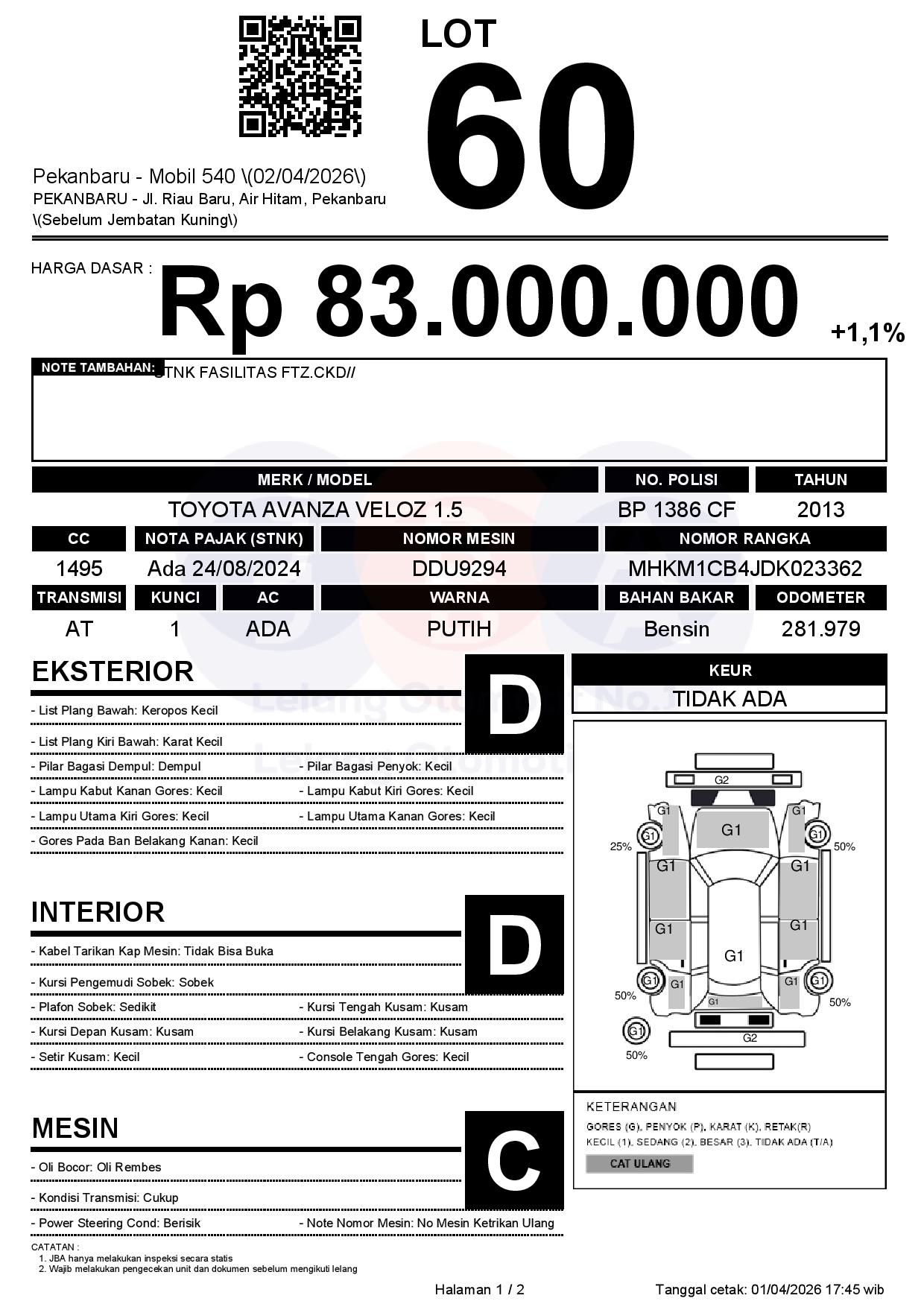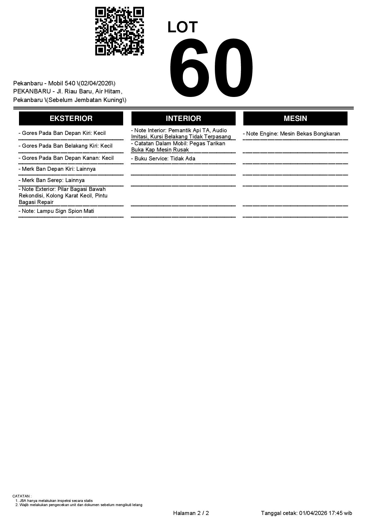 Tanggal Lelang: 02/04/2026 | 13:00 WIB