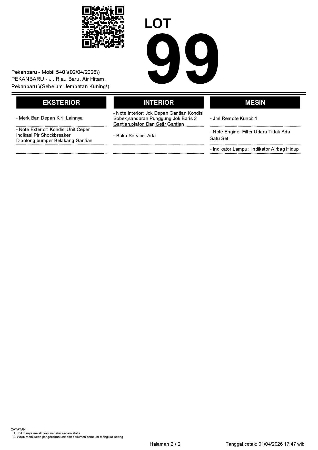2. Peserta lelang wajib cek unit & dokumen