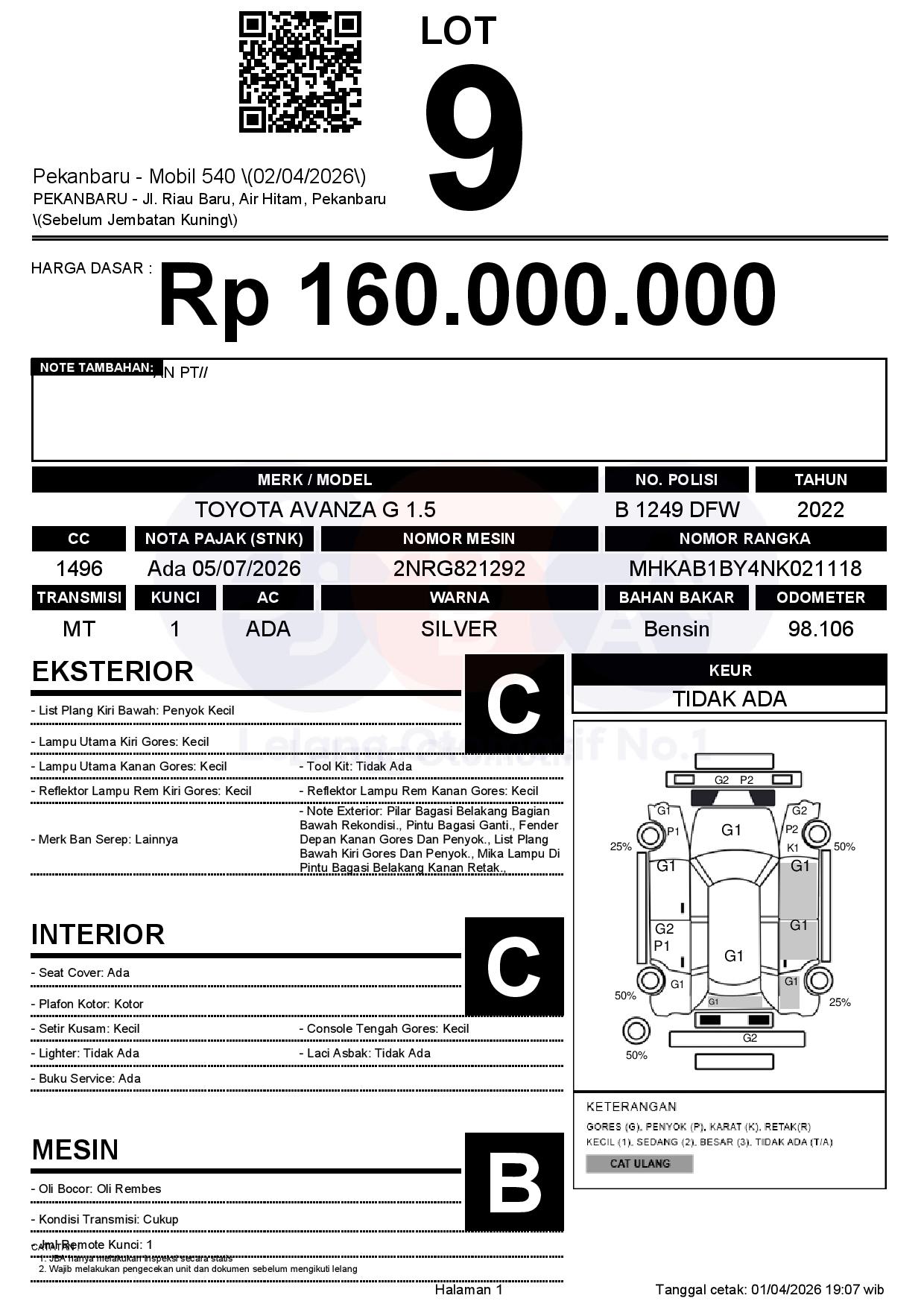 Tanggal Lelang: 02/04/2026 | 13:00 WIB