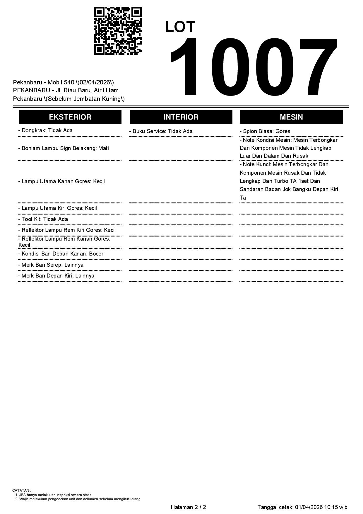 1. Peserta lelang wajib cek unit & dokumen