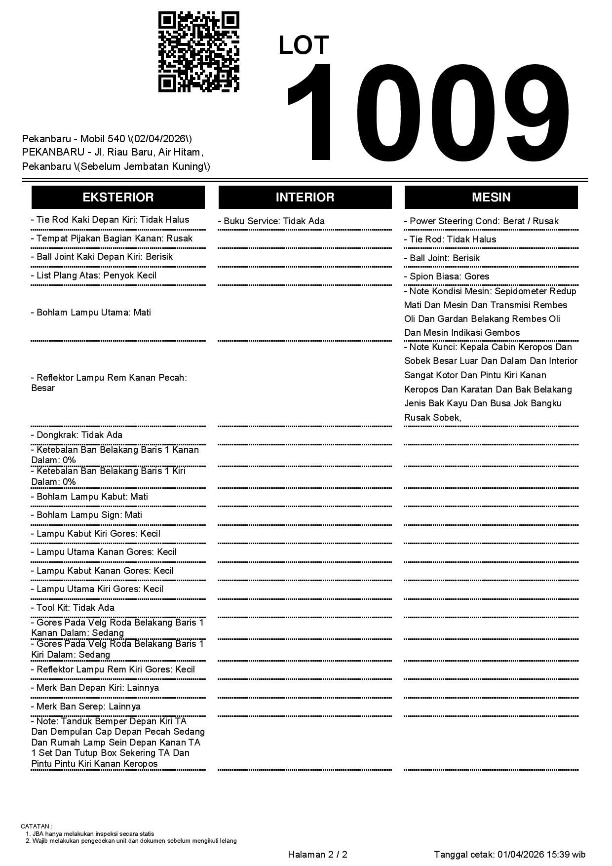 2. Peserta lelang wajib cek unit & dokumen
