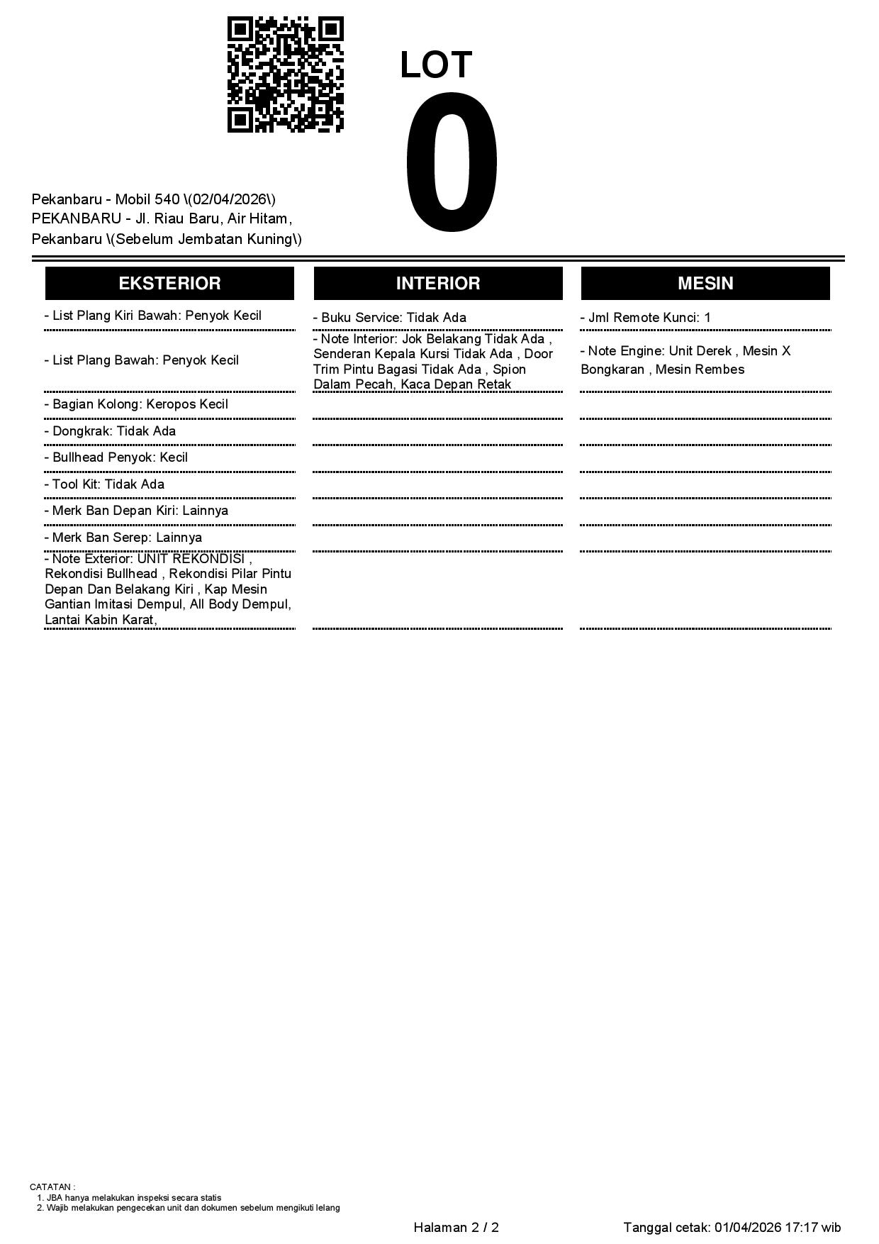2. Peserta lelang wajib cek unit & dokumen
