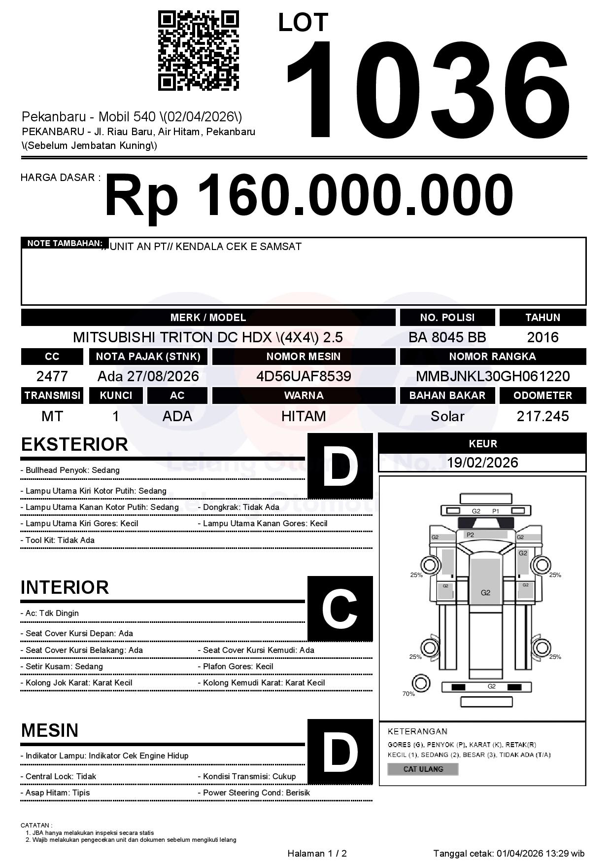 1. Peserta lelang wajib cek unit & dokumen