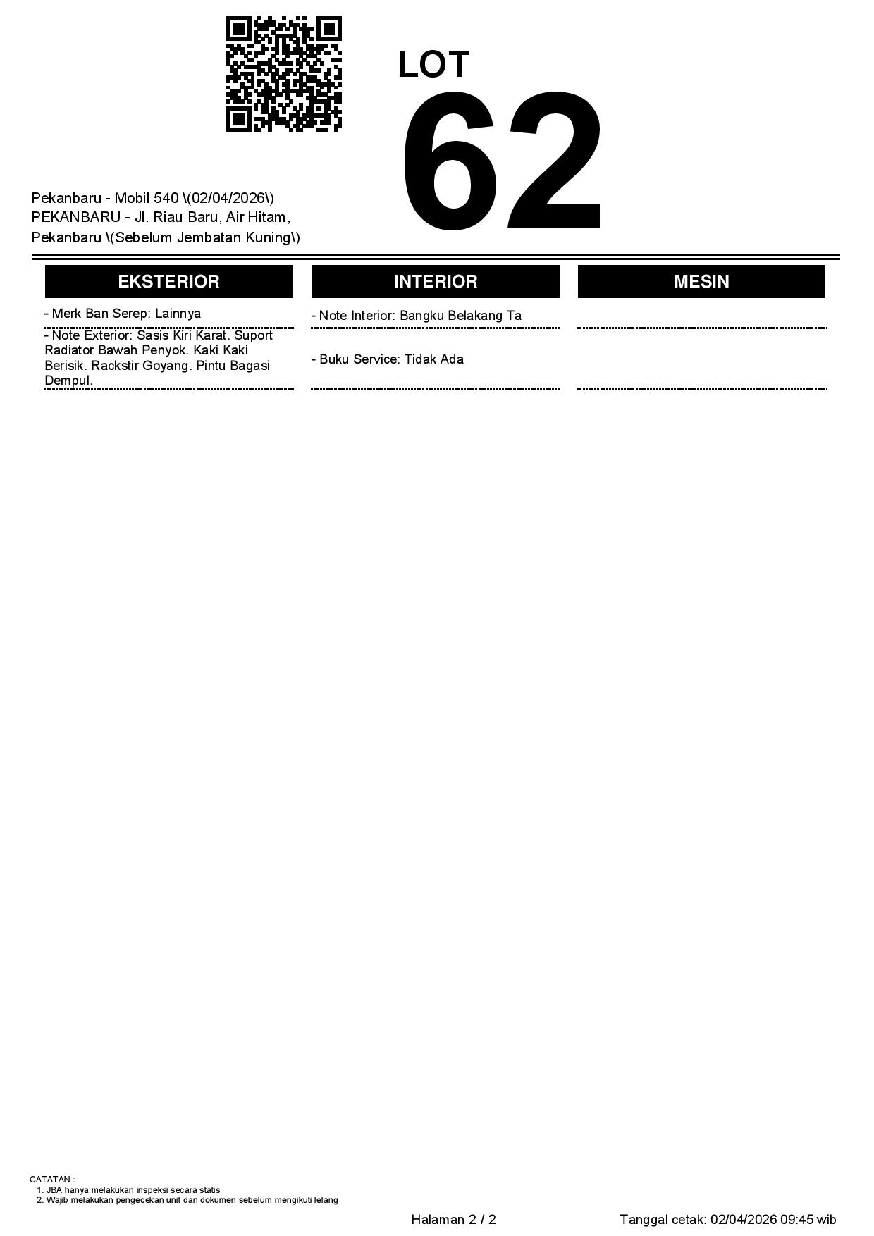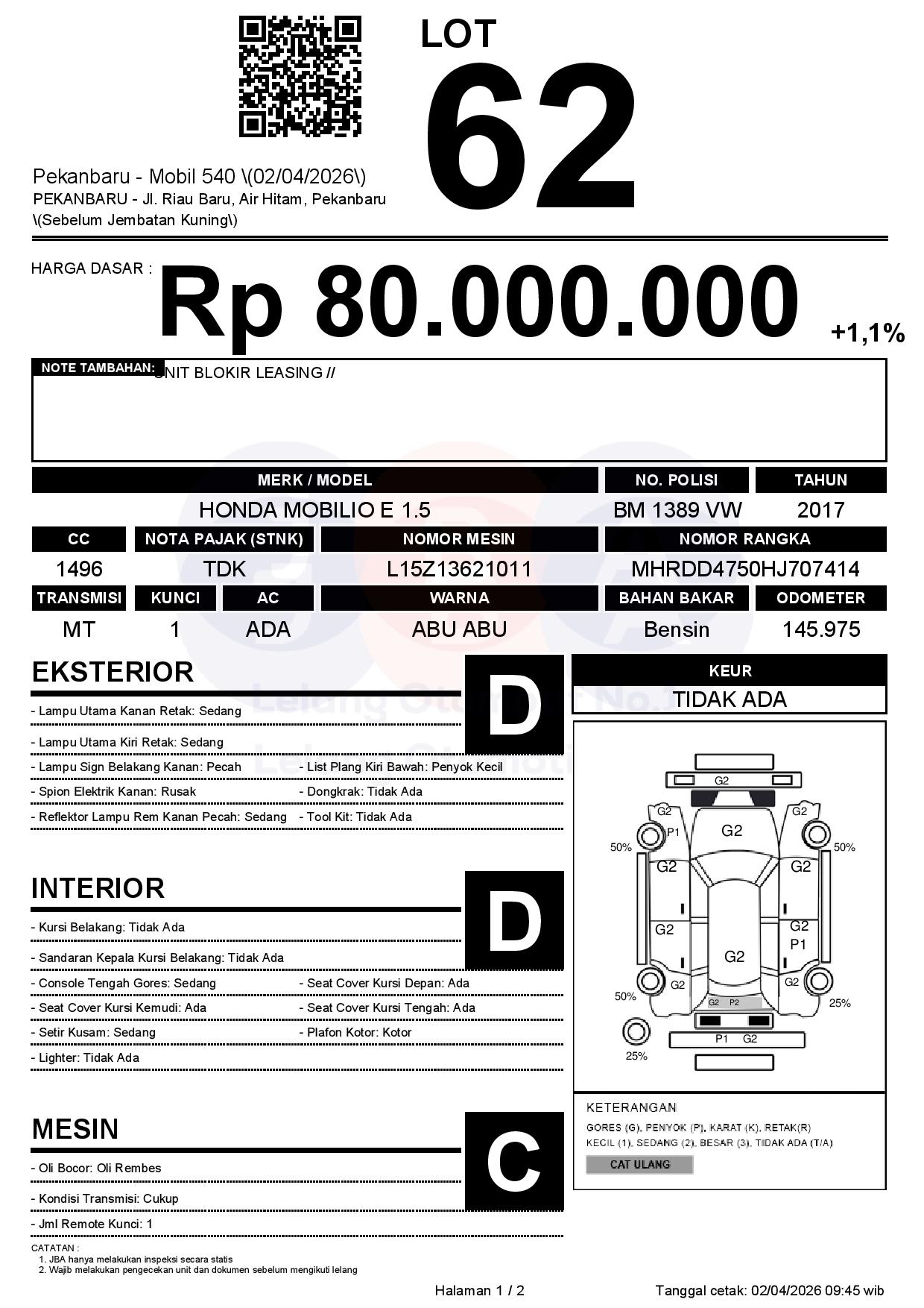 Tanggal Lelang: 02/04/2026 | 13:00 WIB