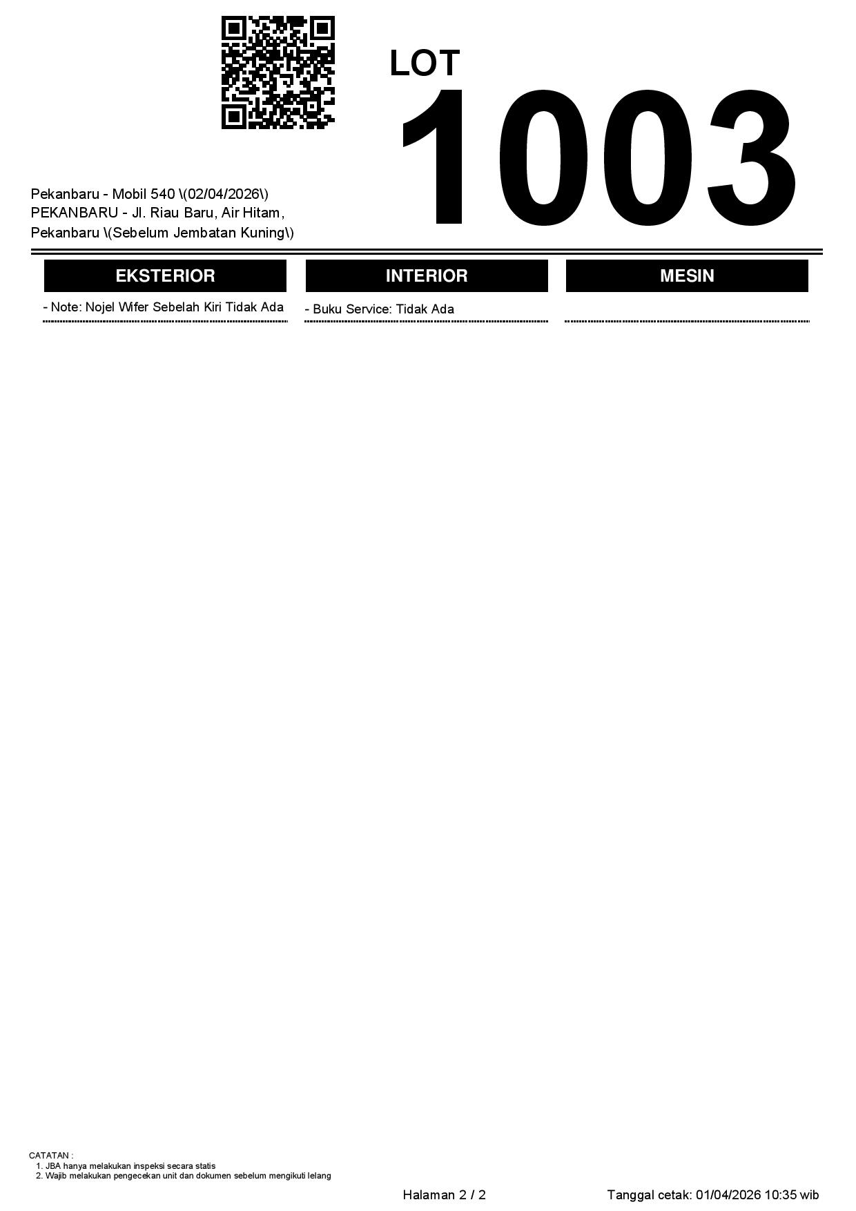 Tanggal Lelang: 02/04/2026 | 13:00 WIB
