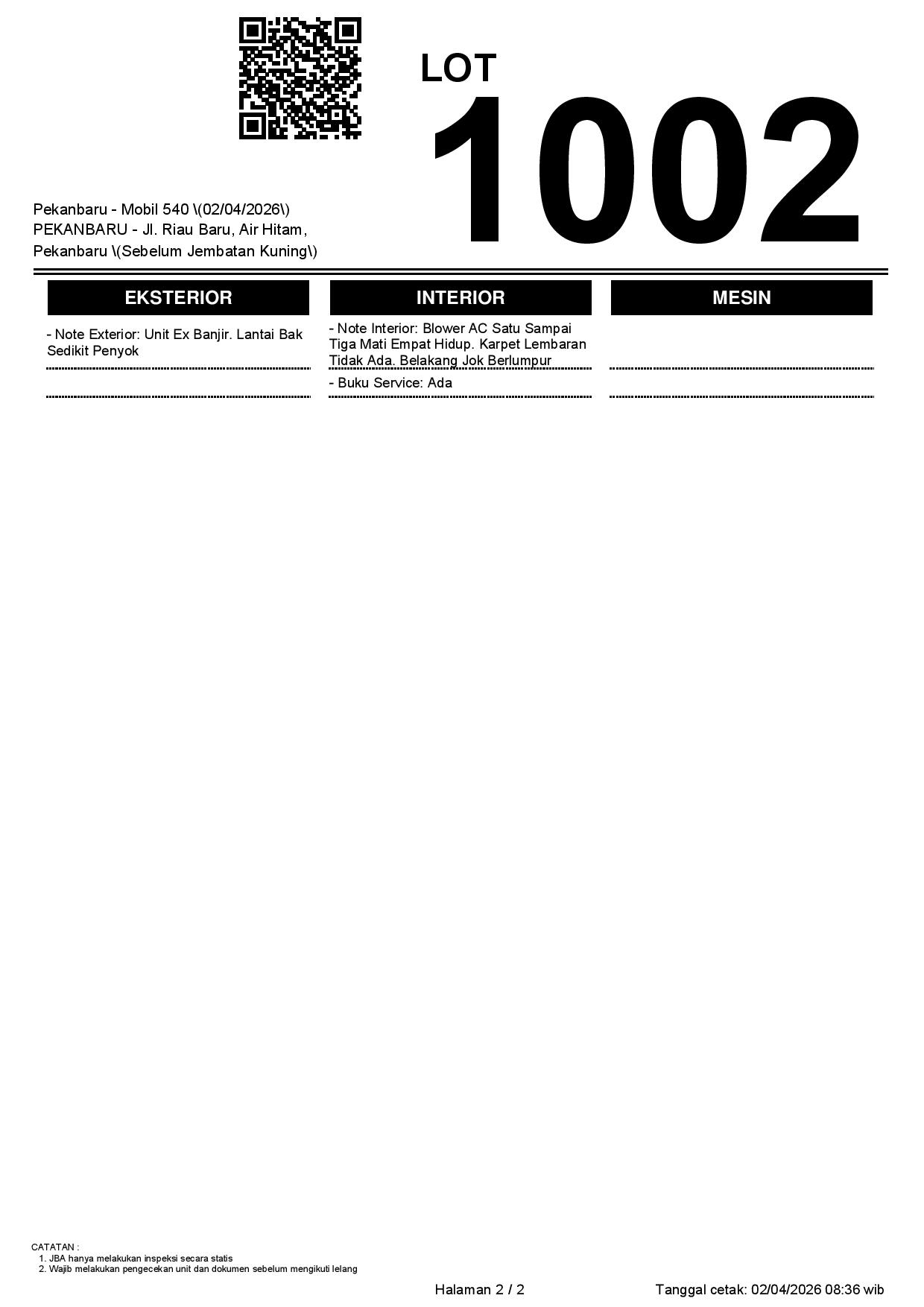 Tanggal Lelang: 02/04/2026 | 13:00 WIB