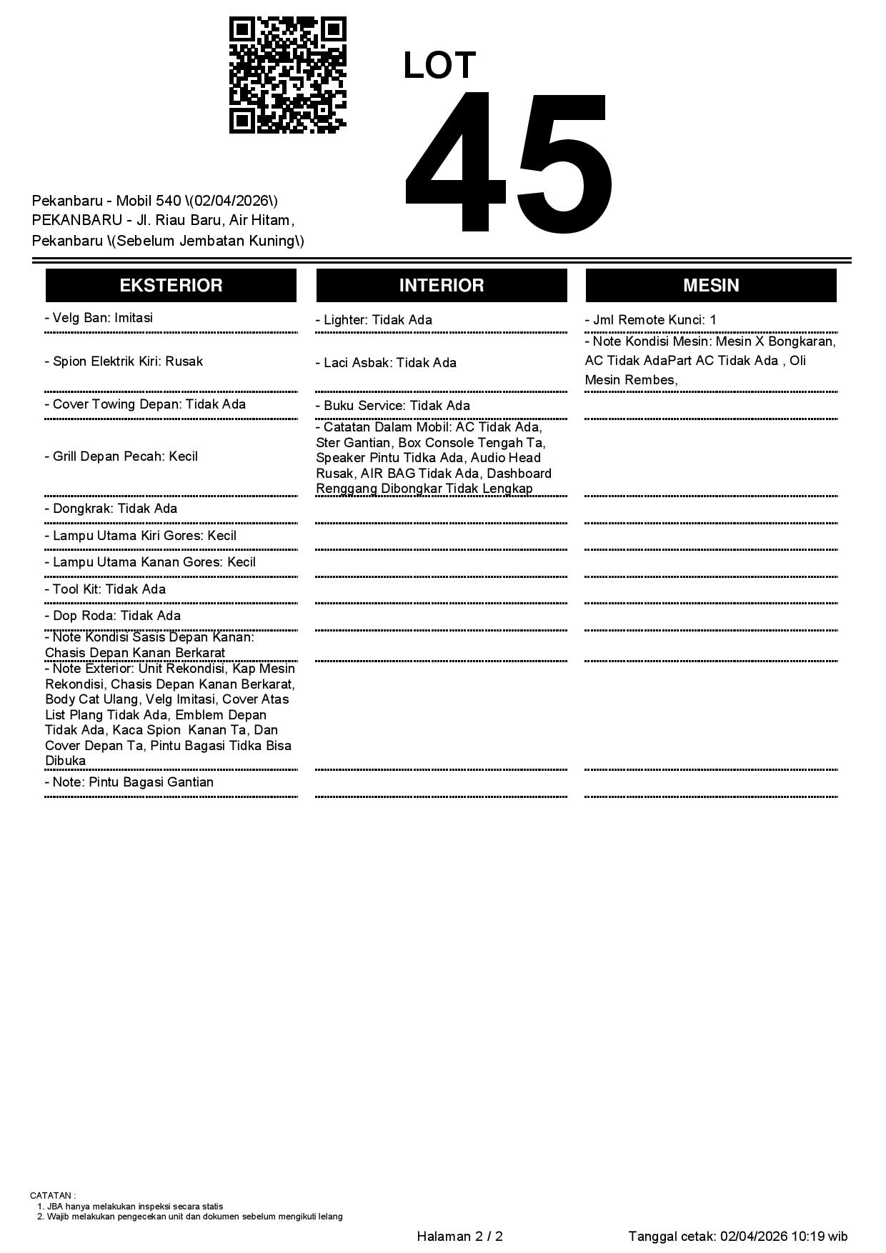 Tanggal Lelang: 02/04/2026 | 13:00 WIB