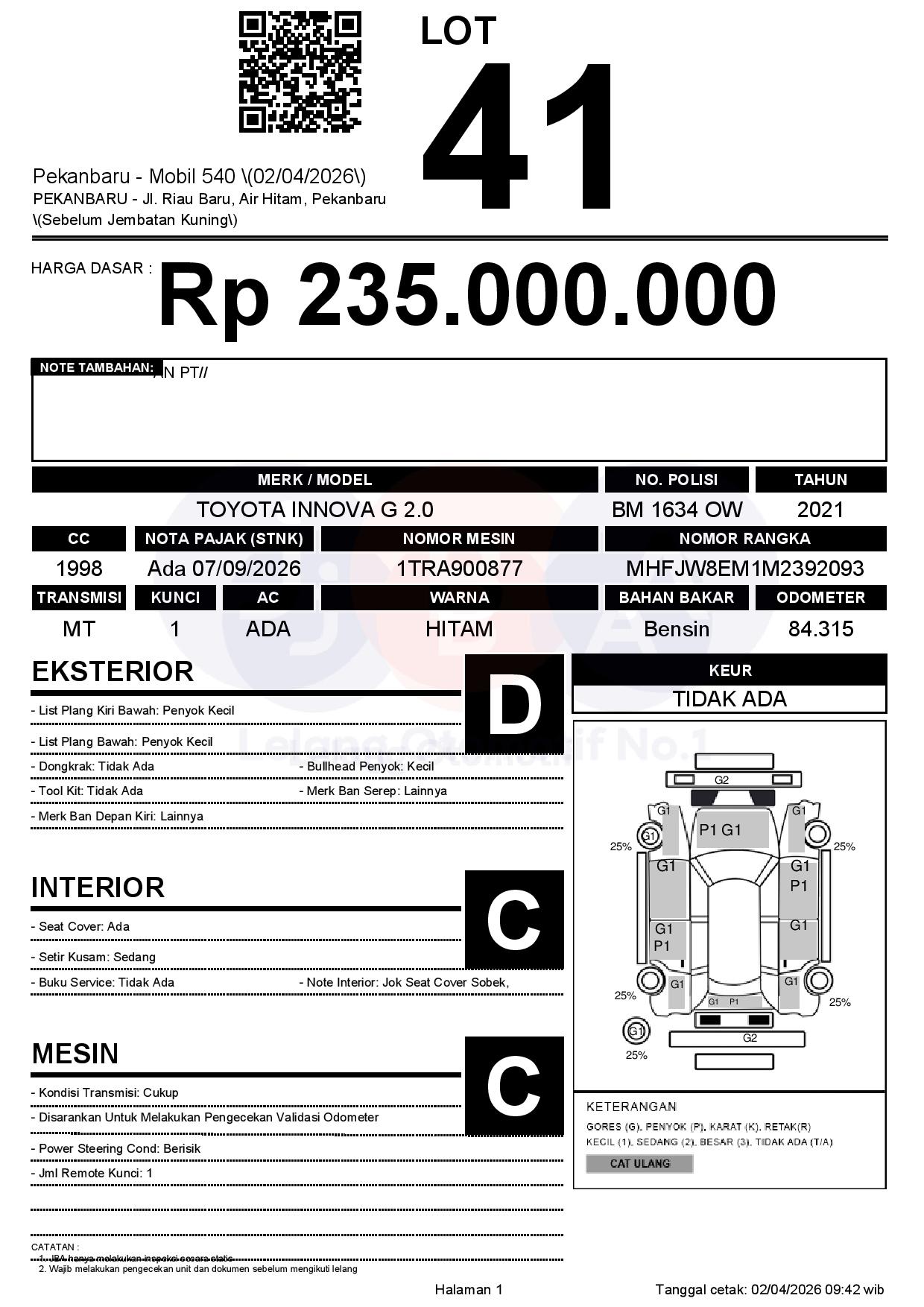 Tanggal Lelang: 02/04/2026 | 13:00 WIB
