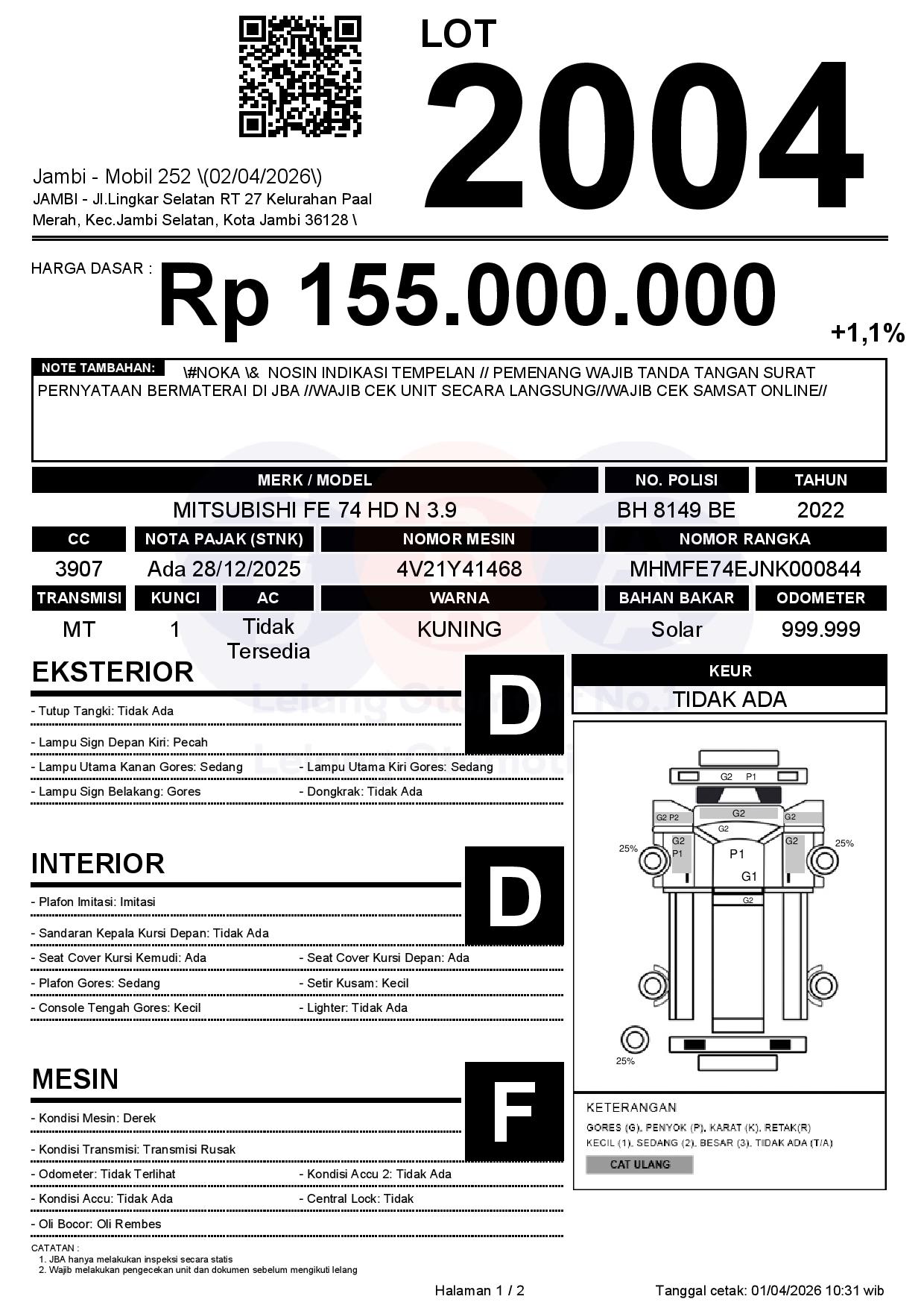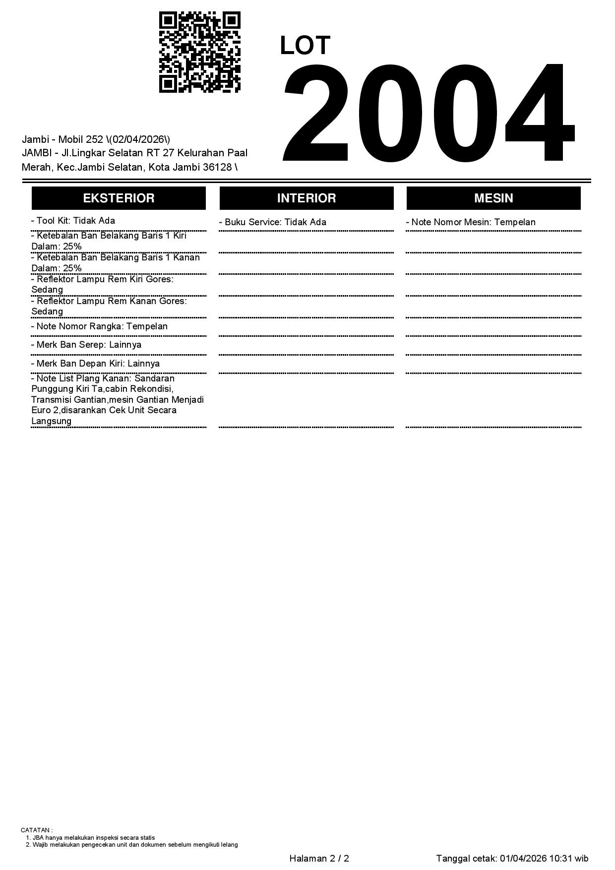 Tanggal Lelang: 02/04/2026 | 14:00 WIB