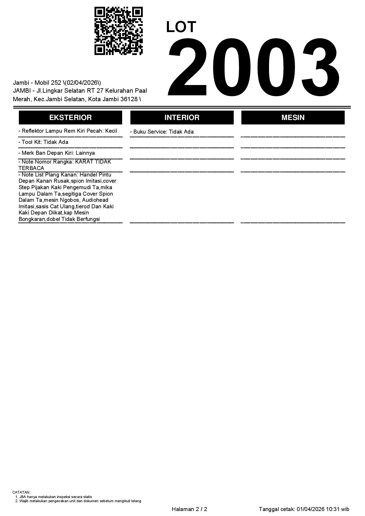 Tanggal Lelang: 02/04/2026 | 14:00 WIB