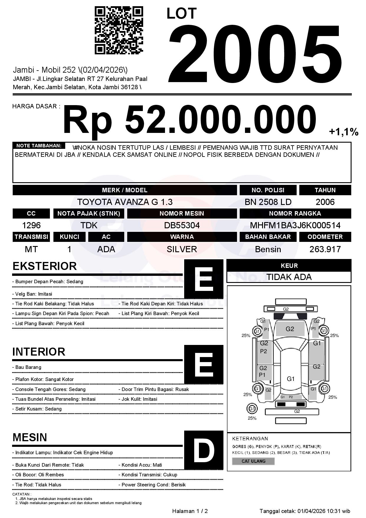 Tanggal Lelang: 02/04/2026 | 14:00 WIB