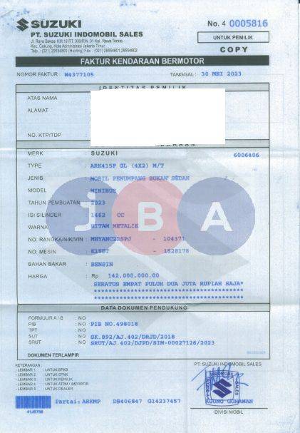 TYPE UNIT DI SAMSAT ONLINE-FAKTUR ARK415F GL (4X2) M/T SEDANGKAN DI BPKB ARK415F GX(4X2) A/T//NOPOL FISIK BEDA DGN DOKUMEN