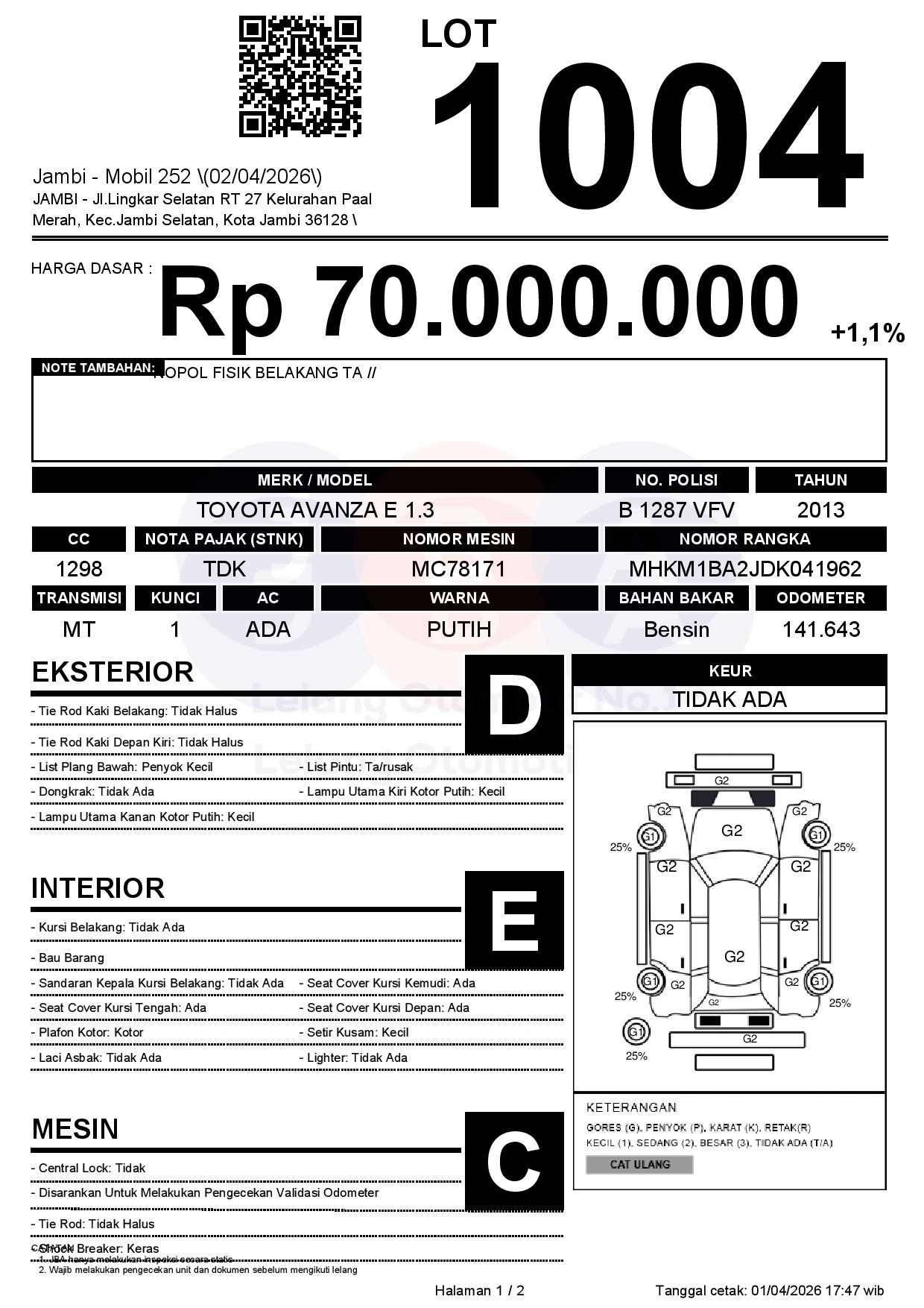 Tanggal Lelang: 02/04/2026 | 13:00 WIB