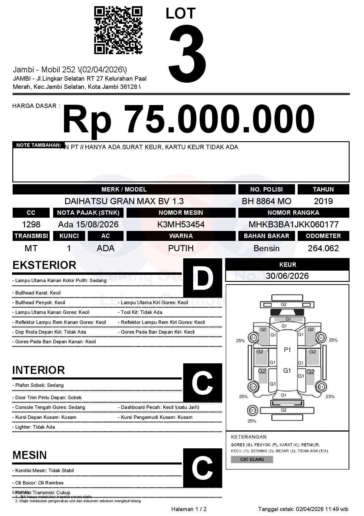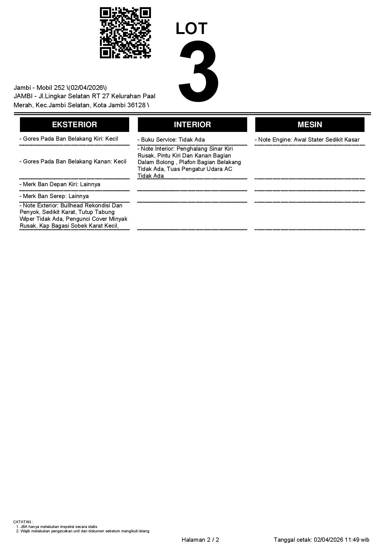 Tanggal Lelang: 02/04/2026 | 13:00 WIB