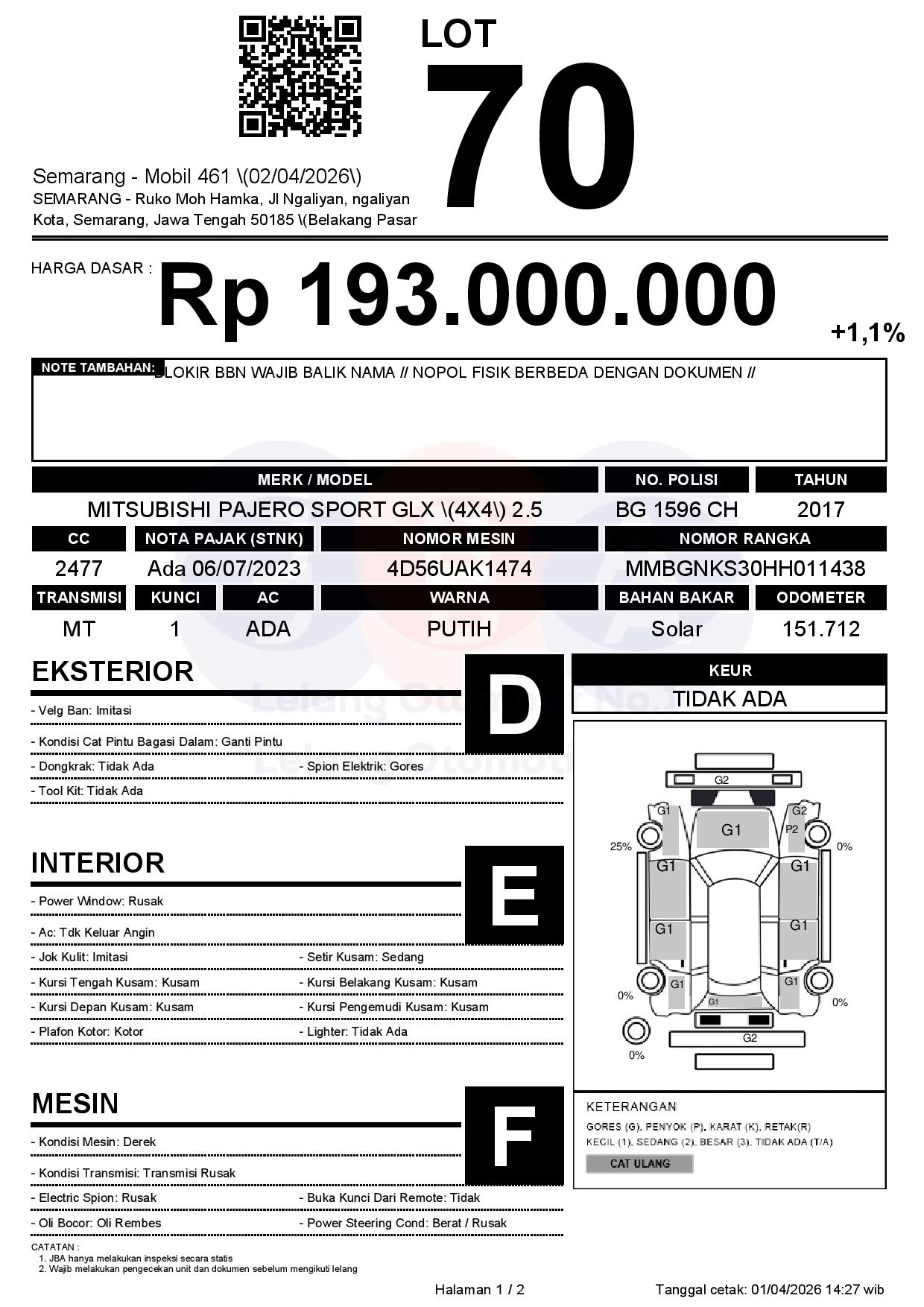 Tanggal Lelang: 02/04/2026 | 13:00 WIB