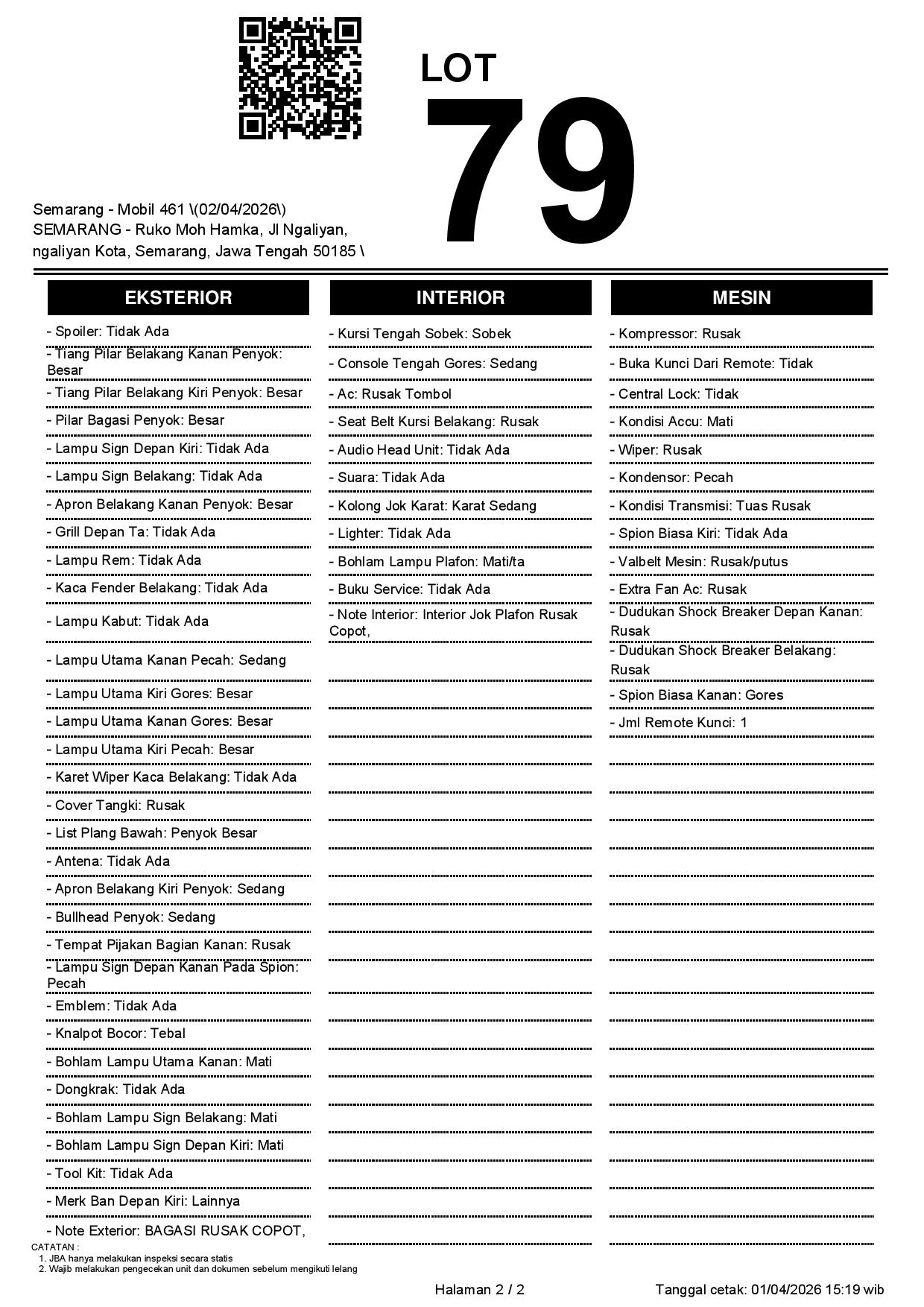 2. Peserta lelang wajib cek unit & dokumen