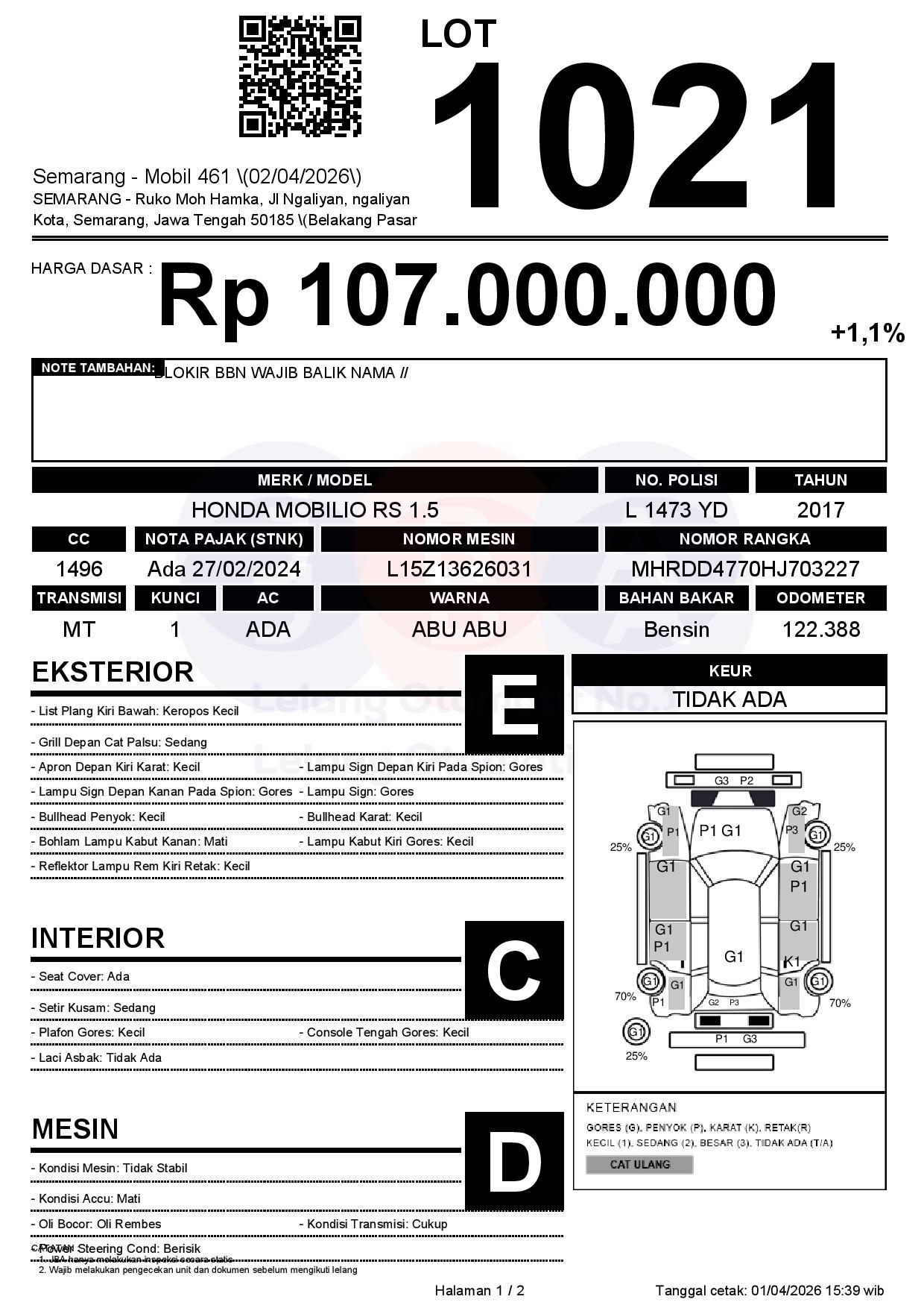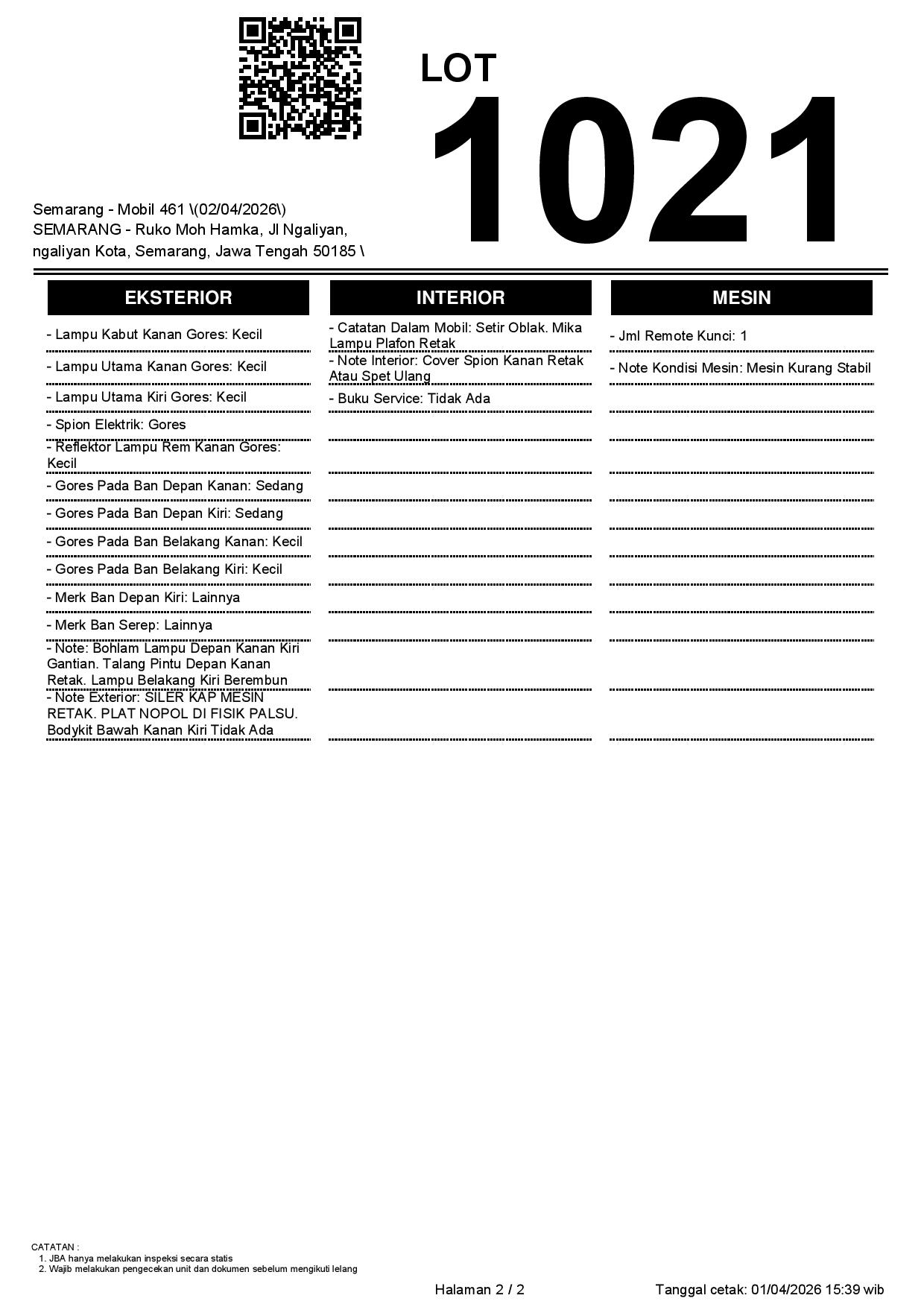 Tanggal Lelang: 02/04/2026 | 14:00 WIB