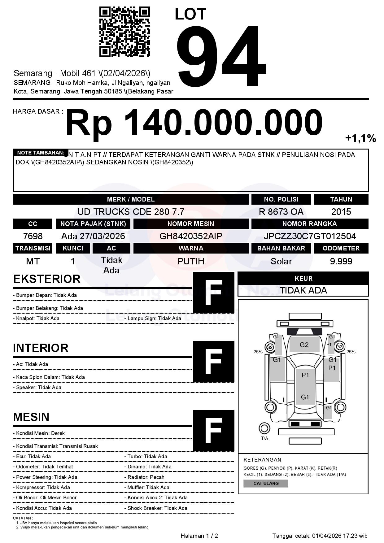 Tanggal Lelang: 02/04/2026 | 13:00 WIB