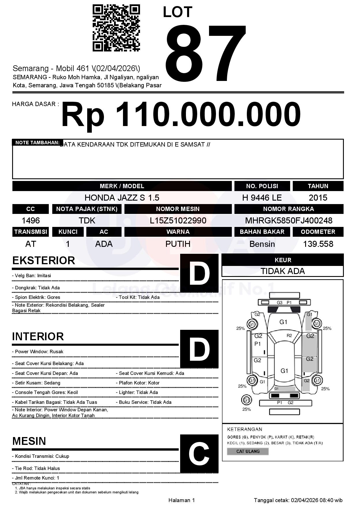 Tanggal Lelang: 02/04/2026 | 13:00 WIB