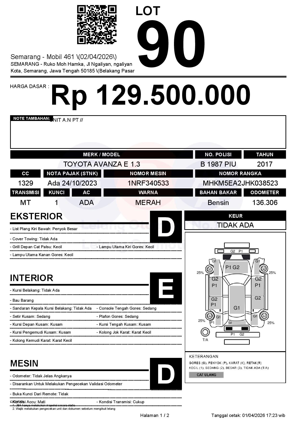 Tanggal Lelang: 02/04/2026 | 13:00 WIB