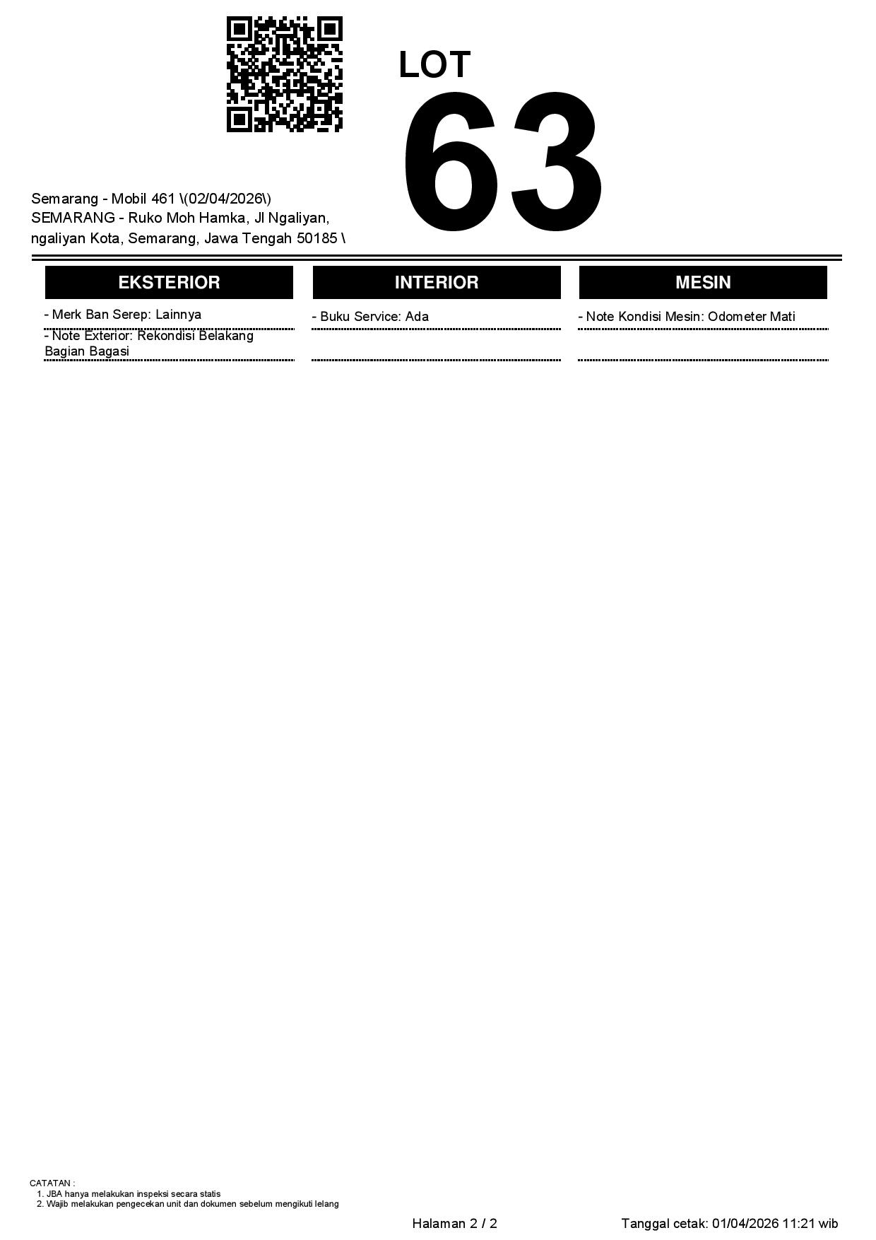 1. Peserta lelang wajib cek unit & dokumen