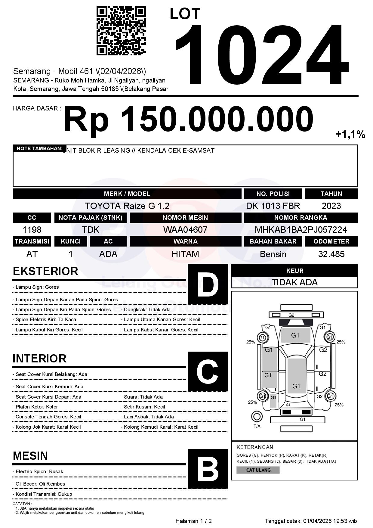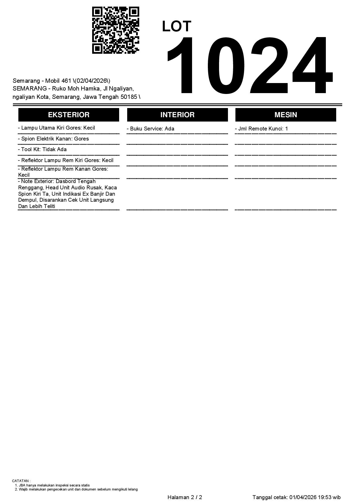 Tanggal Lelang: 02/04/2026 | 14:00 WIB