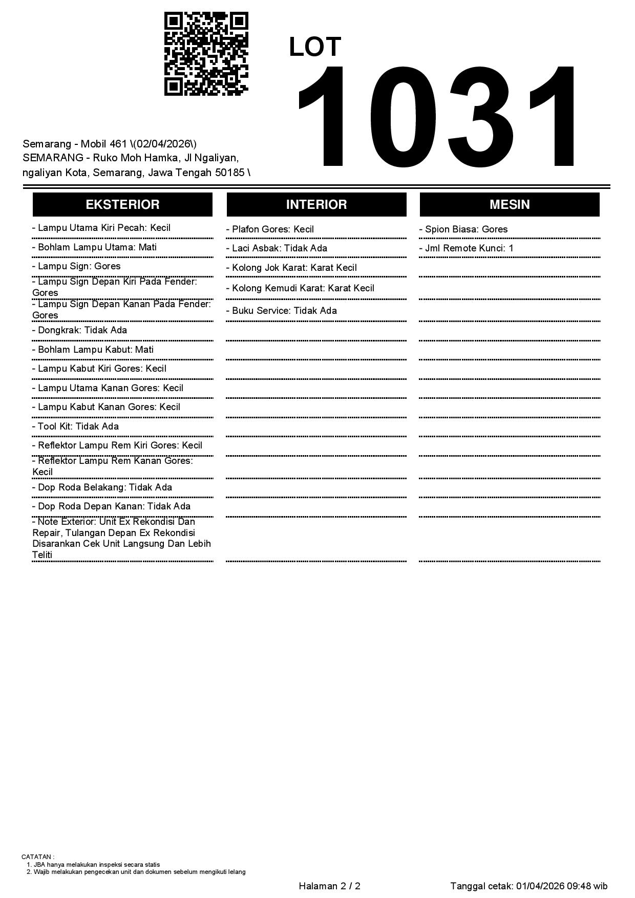 2. Peserta lelang wajib cek unit & dokumen