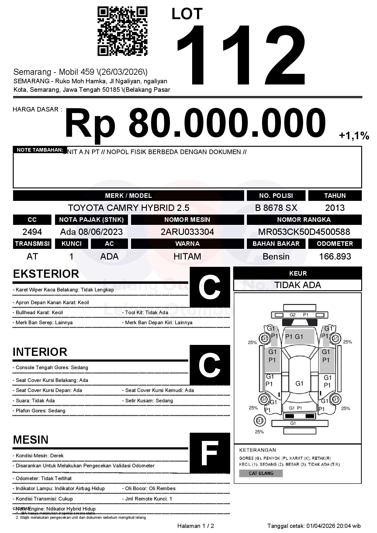 Tanggal Lelang: 02/04/2026 | 13:00 WIB