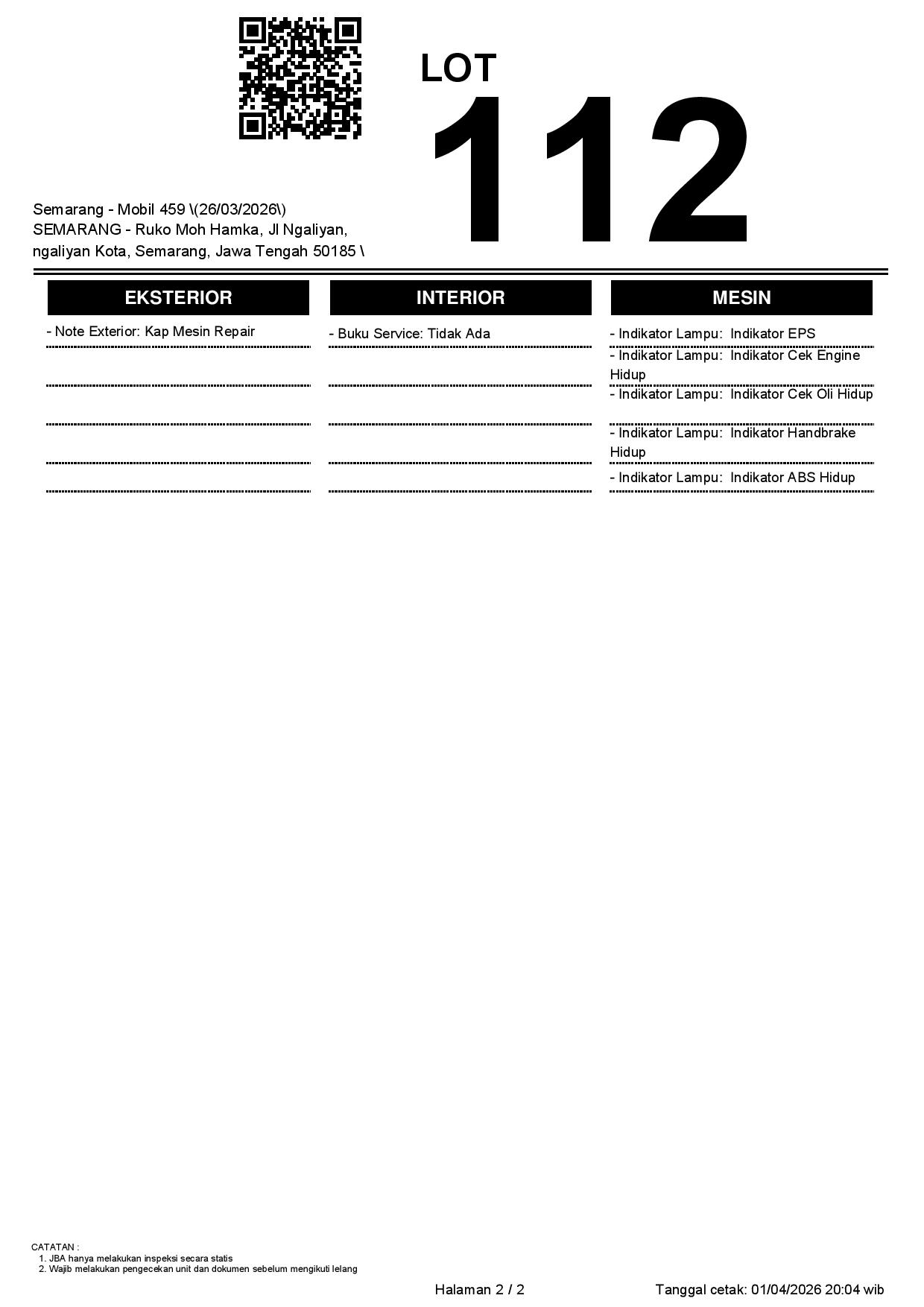 2. Peserta lelang wajib cek unit & dokumen