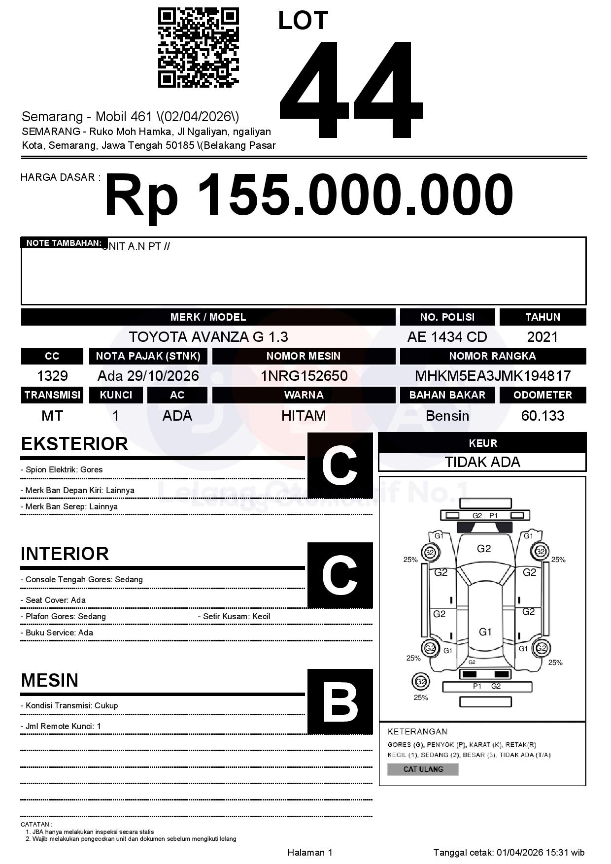 Tanggal Lelang: 02/04/2026 | 13:00 WIB
