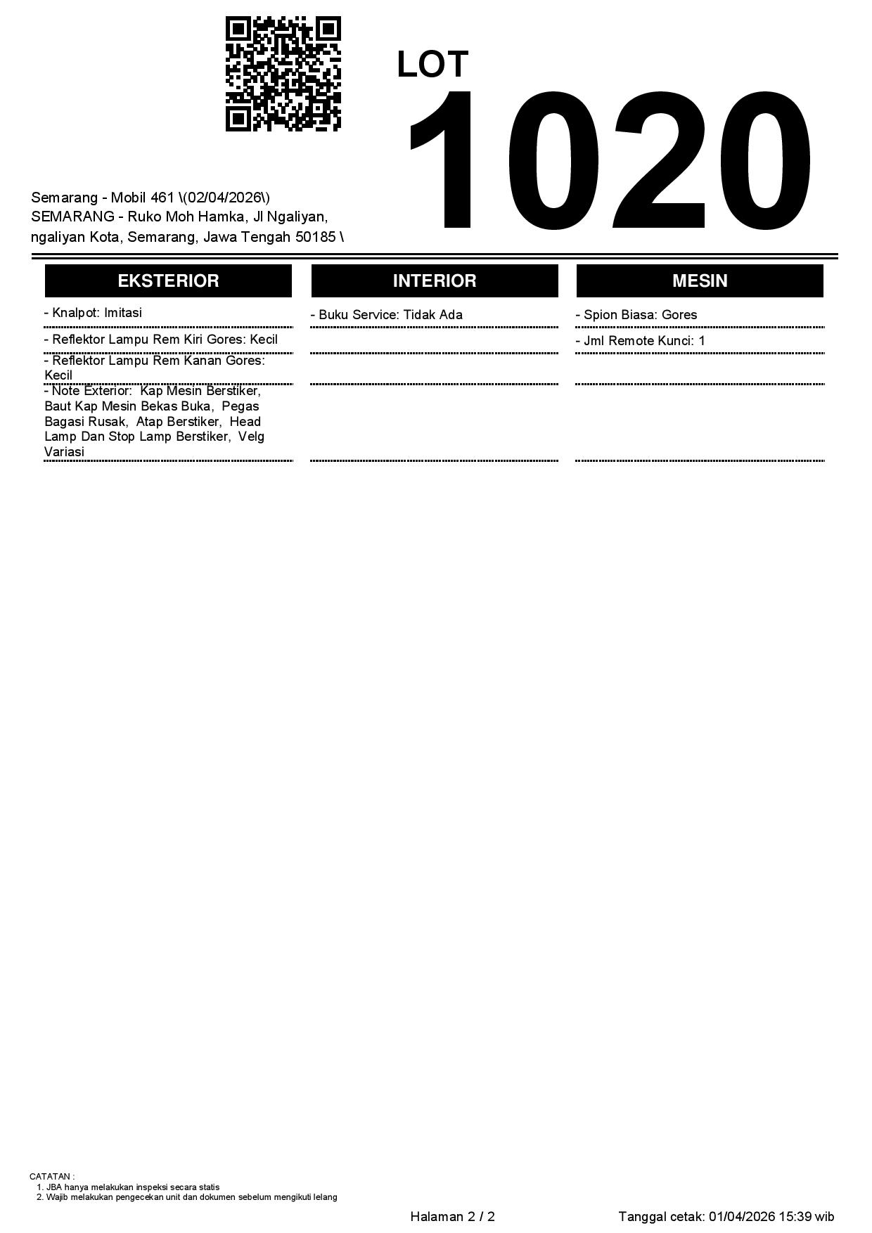 Tanggal Lelang: 02/04/2026 | 14:00 WIB