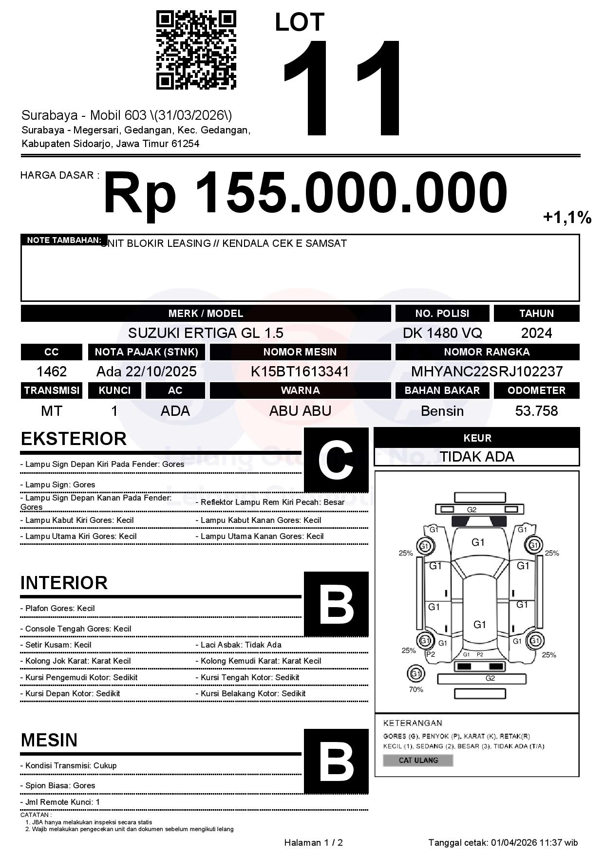 Tanggal Lelang: 02/04/2026 | 14:00 WIB