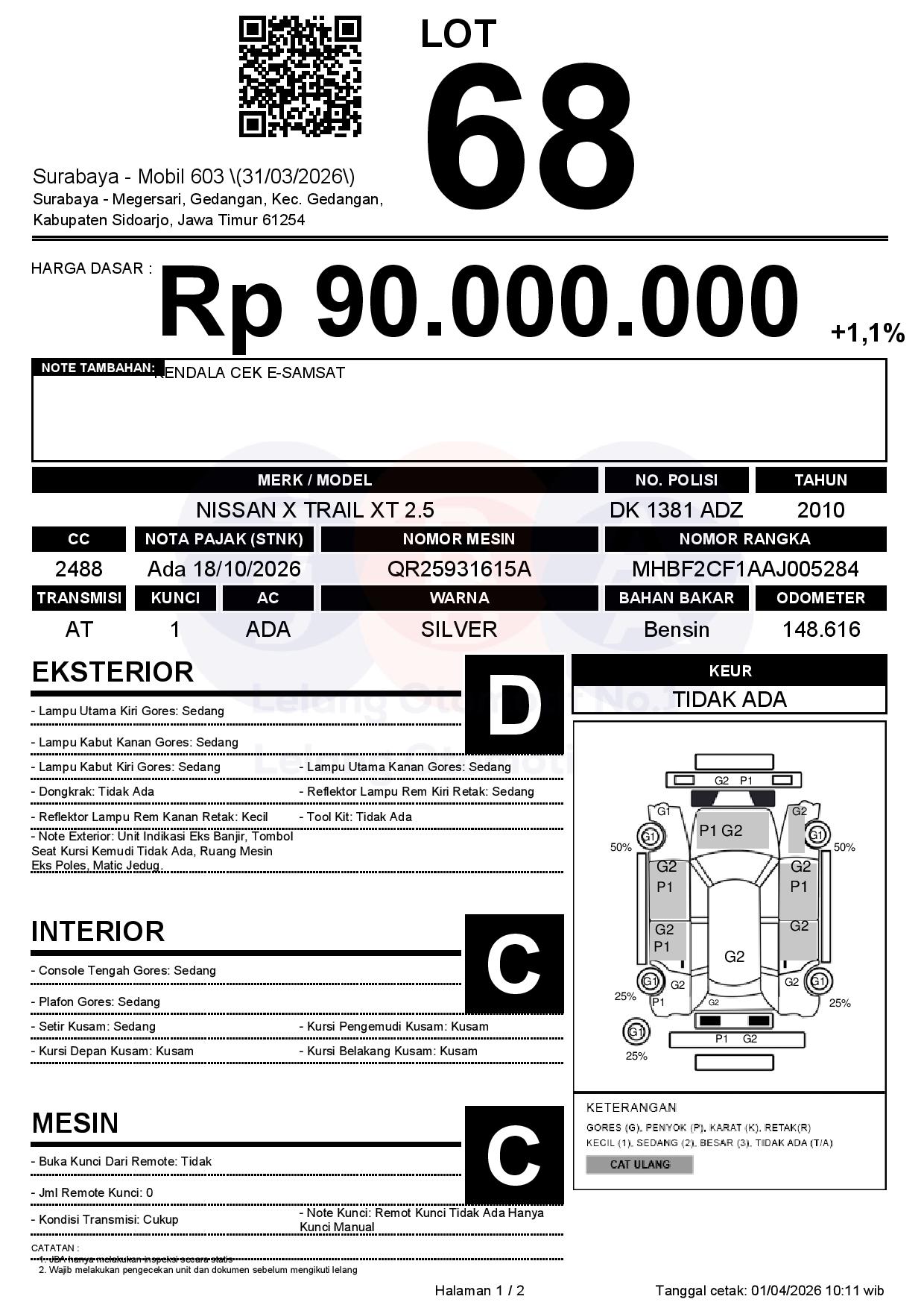 Tanggal Lelang: 02/04/2026 | 14:00 WIB