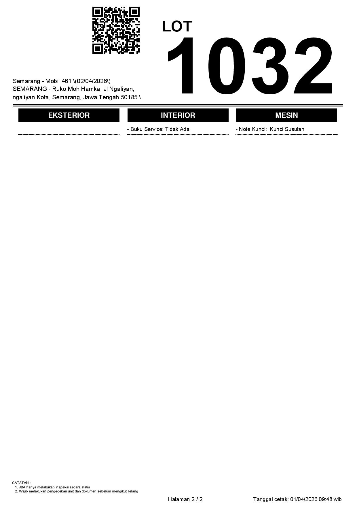 Tanggal Lelang: 02/04/2026 | 14:00 WIB