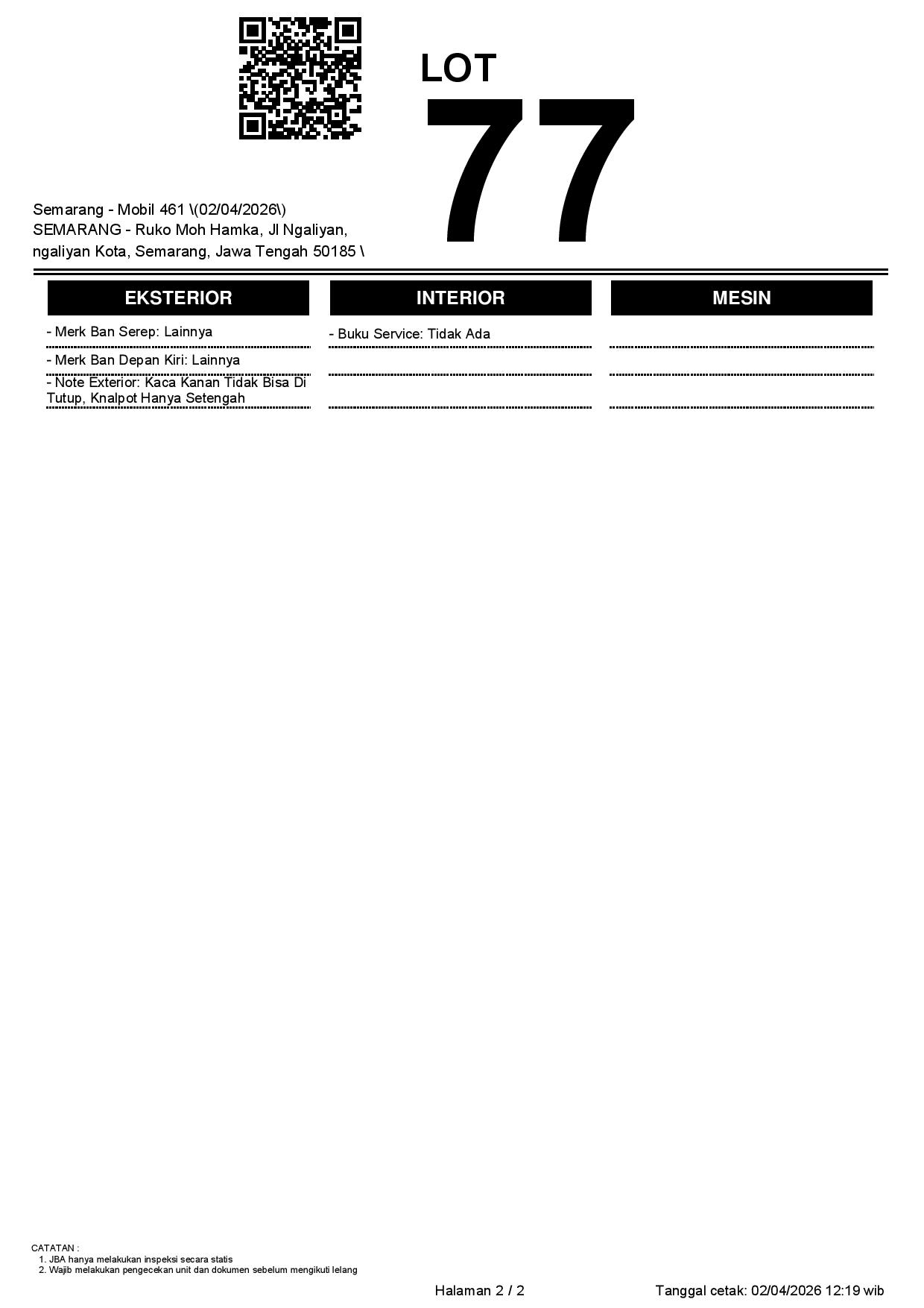 1. Peserta lelang wajib cek unit & dokumen