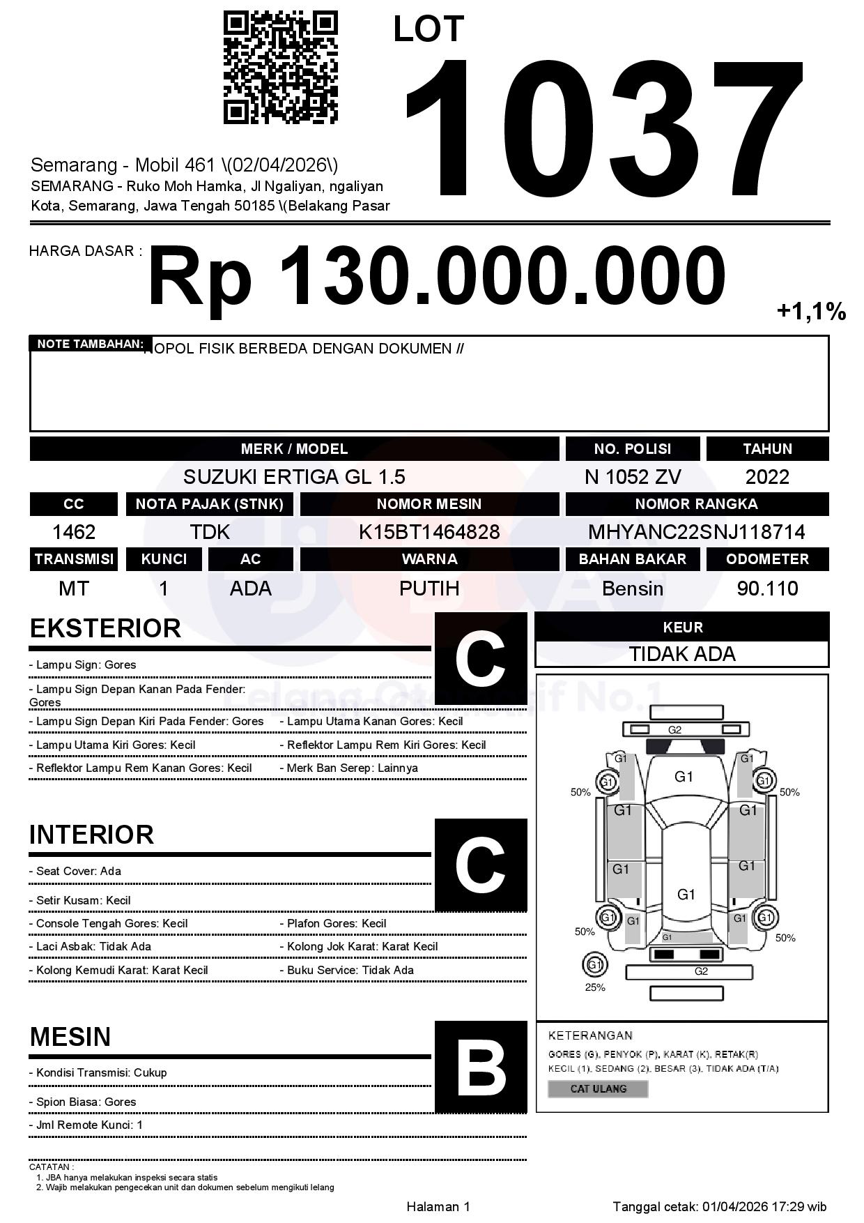 Tanggal Lelang: 02/04/2026 | 14:00 WIB
