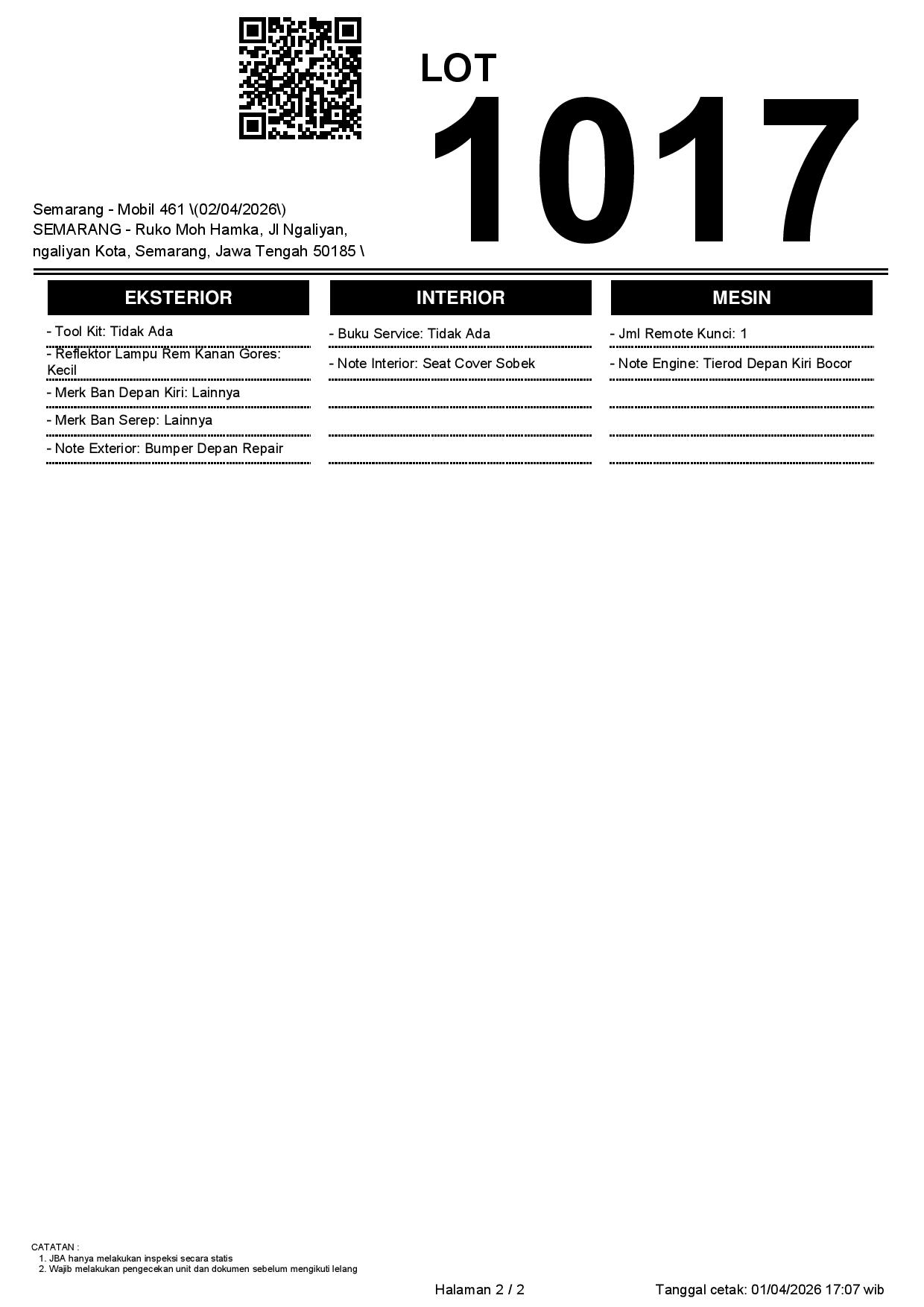 Tanggal Lelang: 02/04/2026 | 14:00 WIB