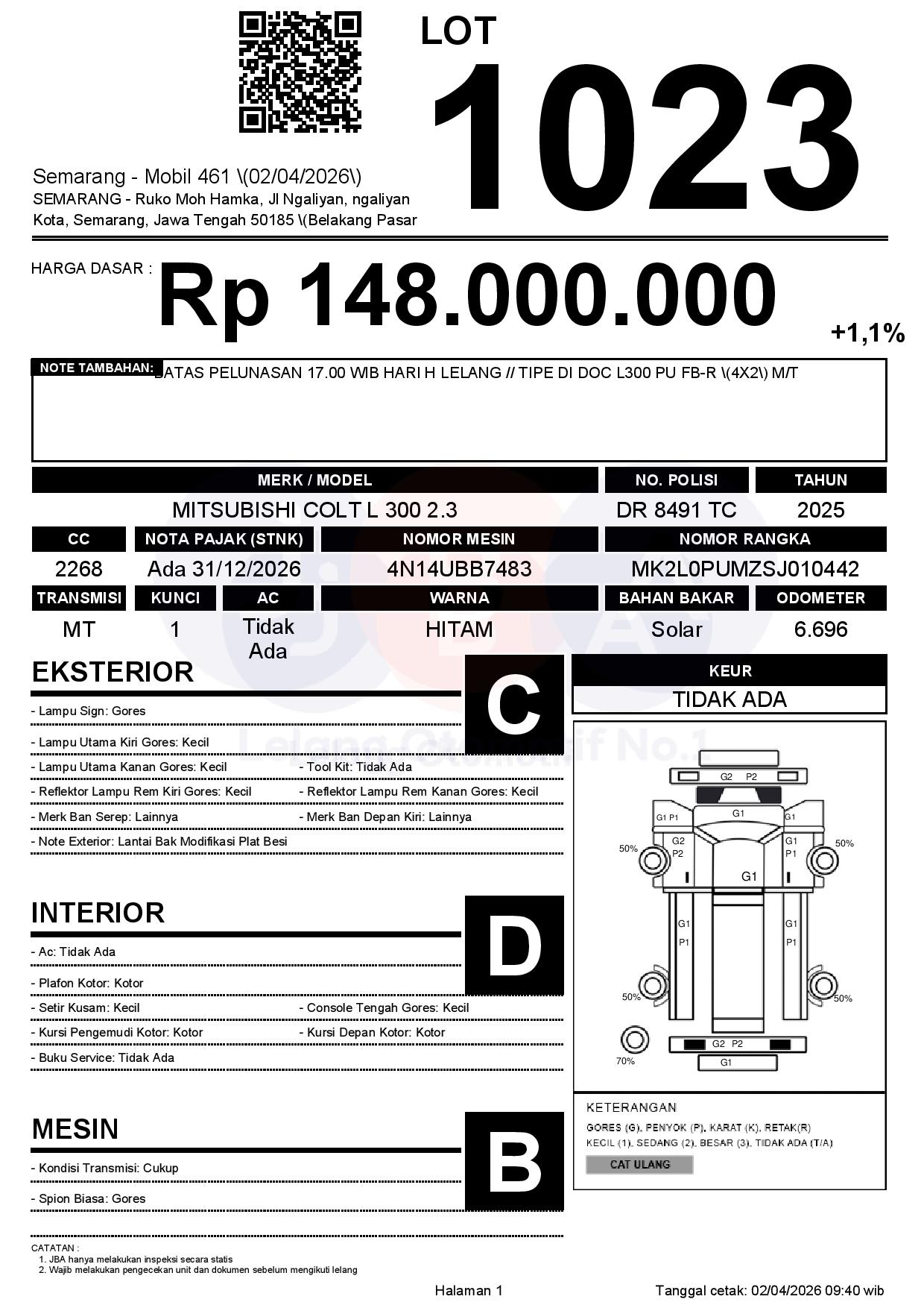 BATAS PELUNASAN 17.00 WIB HARI H LELANG // TIPE DI DOC L300 PU FB-R (4X2) M/T