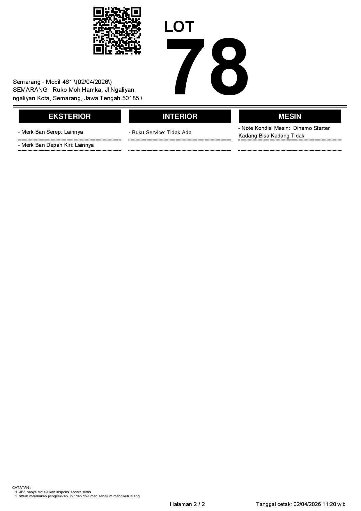 Tanggal Lelang: 02/04/2026 | 13:00 WIB
