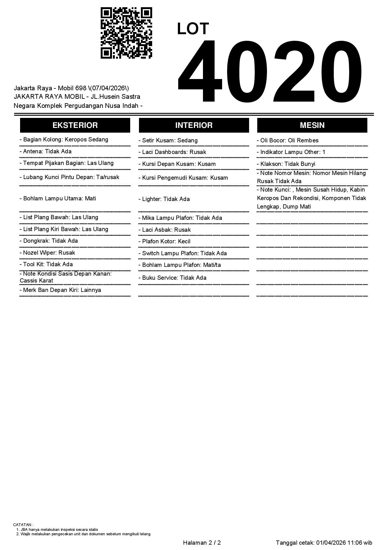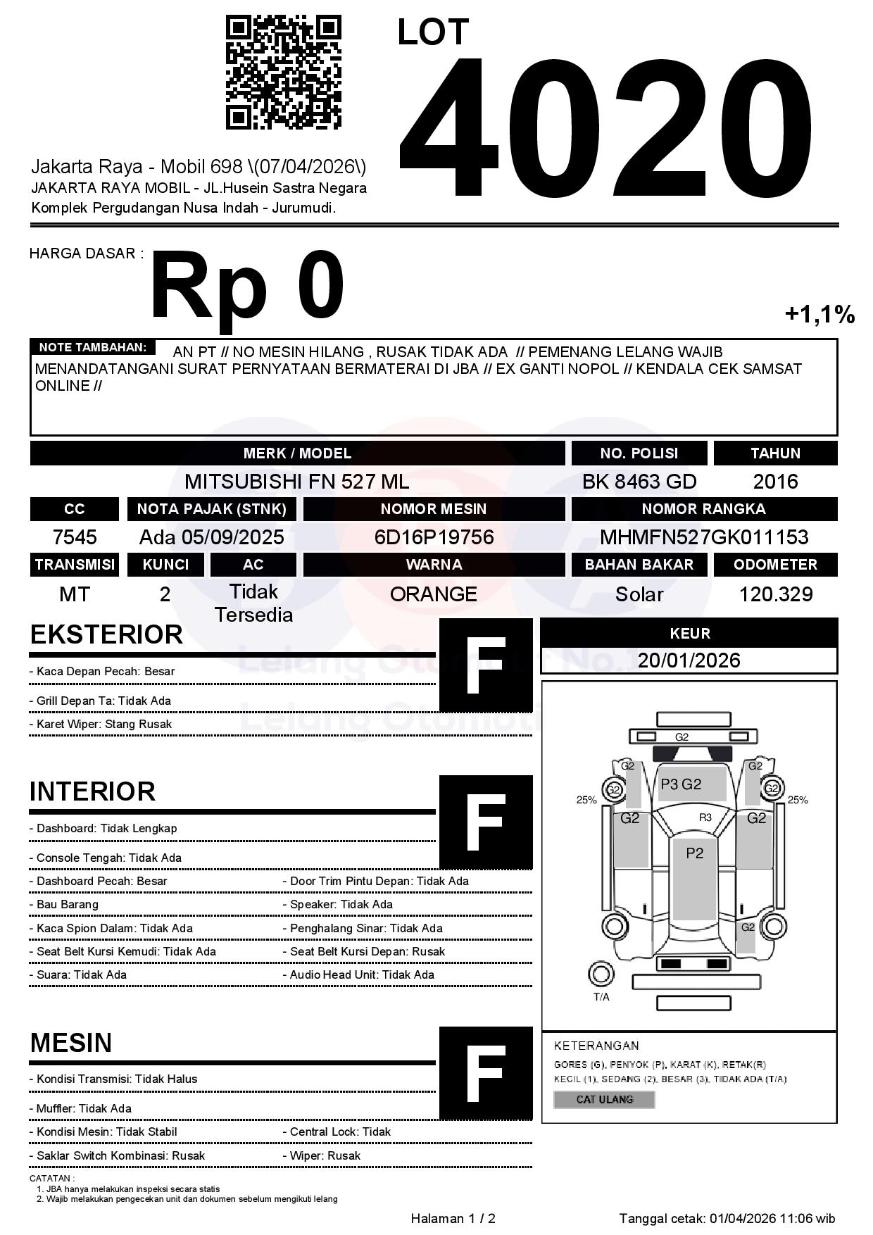 AN PT // NO MESIN HILANG , RUSAK TIDAK ADA // PEMENANG LELANG WAJIB MENANDATANGANI SURAT PERNYATAAN BERMATERAI DI JBA // EX GANTI NOPOL // KENDALA CEK SAMSAT ONLINE //