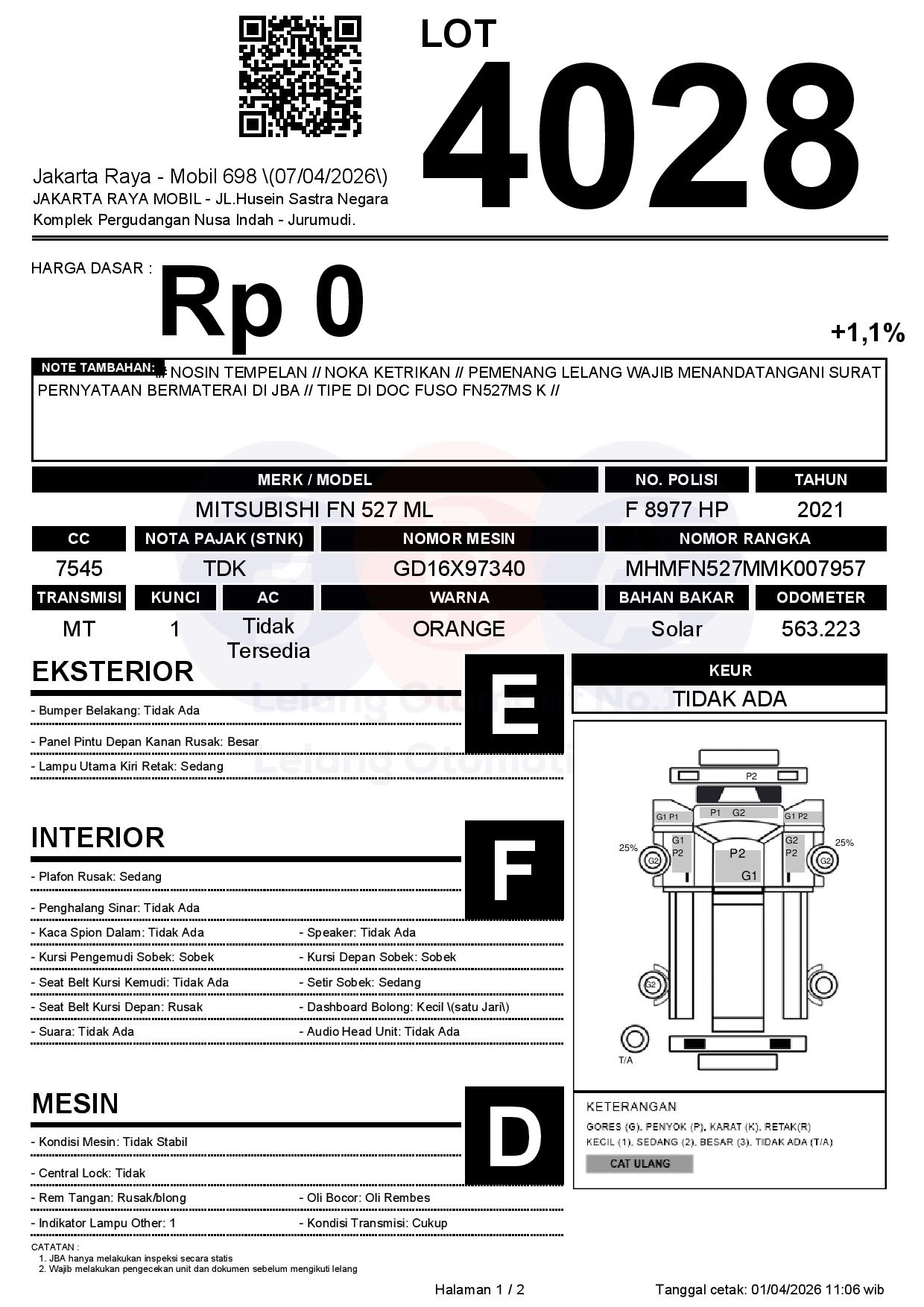 # NOSIN TEMPELAN // NOKA KETRIKAN // PEMENANG LELANG WAJIB MENANDATANGANI SURAT PERNYATAAN BERMATERAI DI JBA // TIPE DI DOC FUSO FN527MS K //
