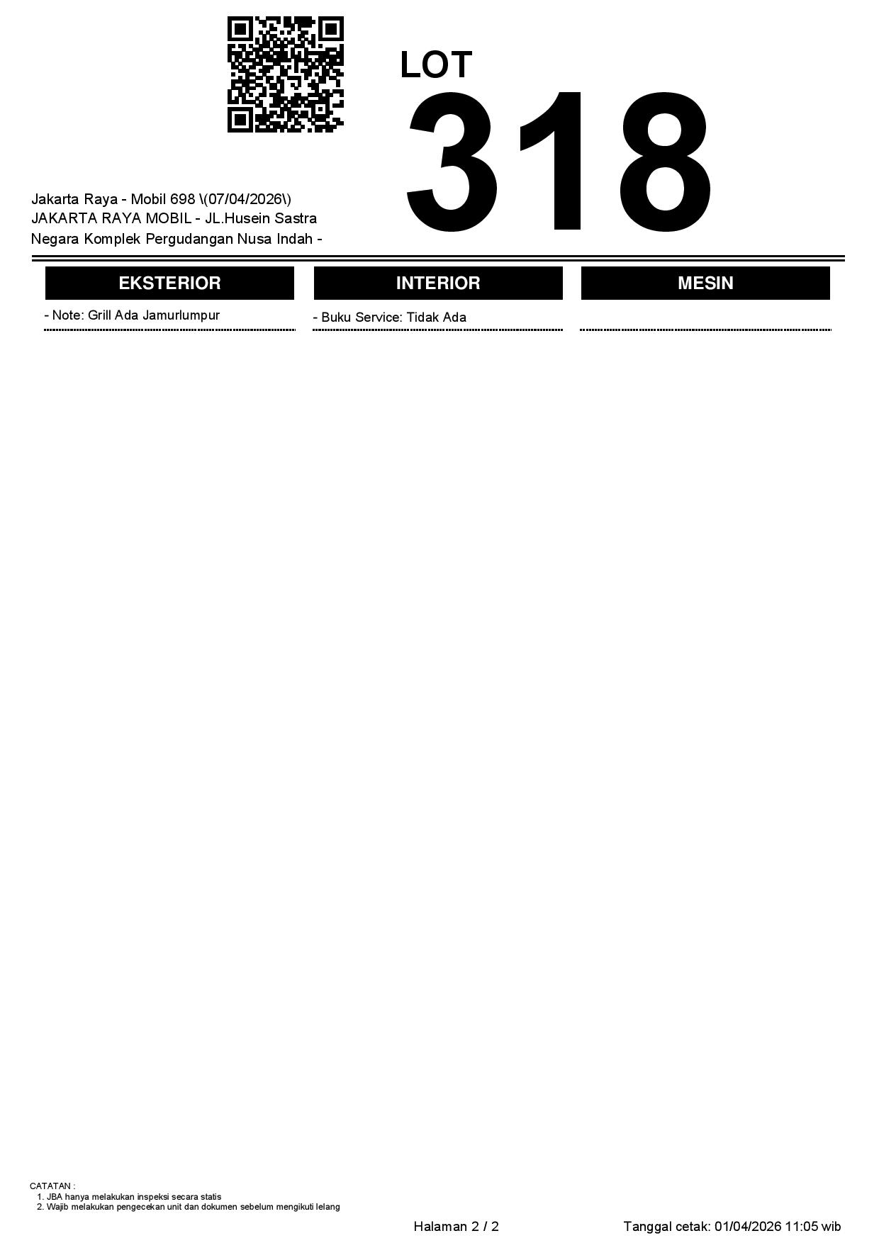 1. Peserta lelang wajib cek unit & dokumen