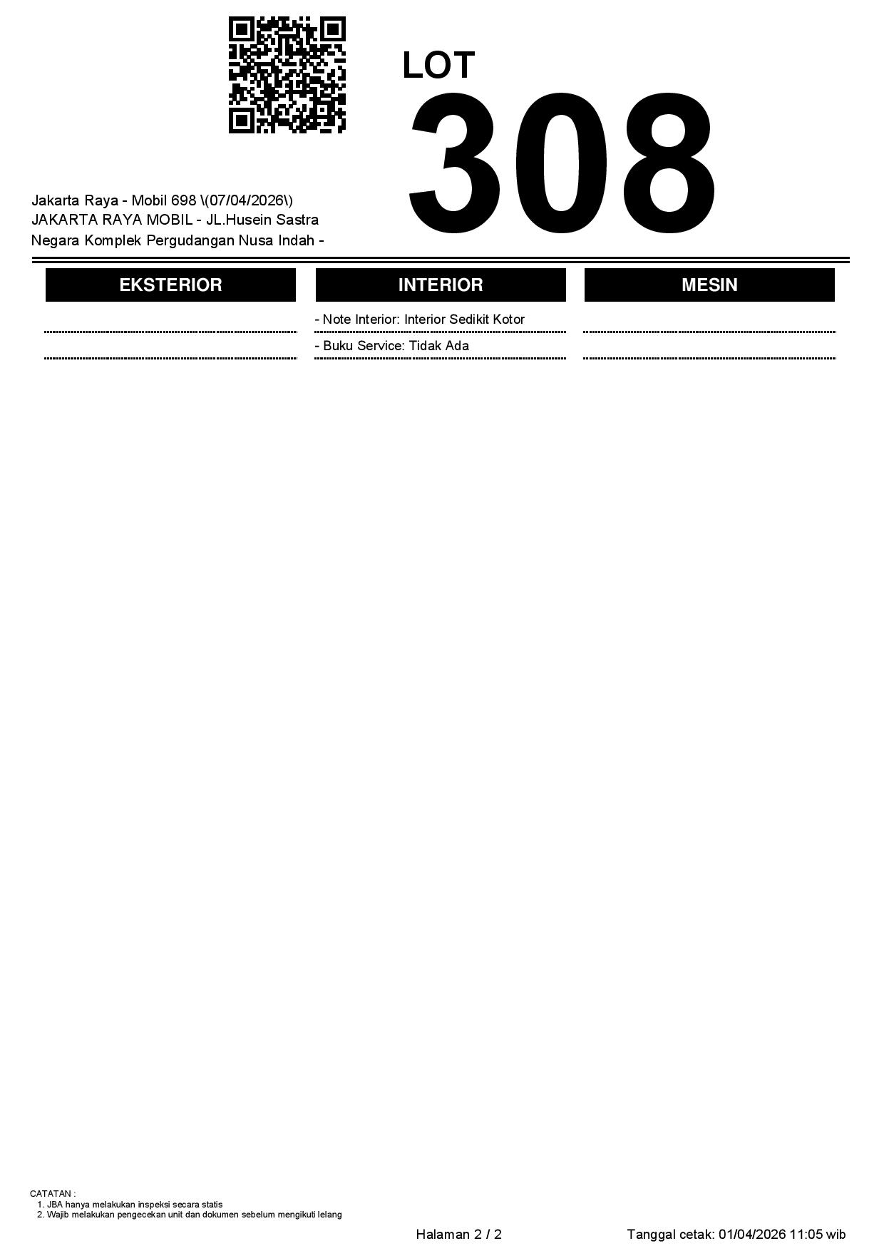 1. Peserta lelang wajib cek unit & dokumen